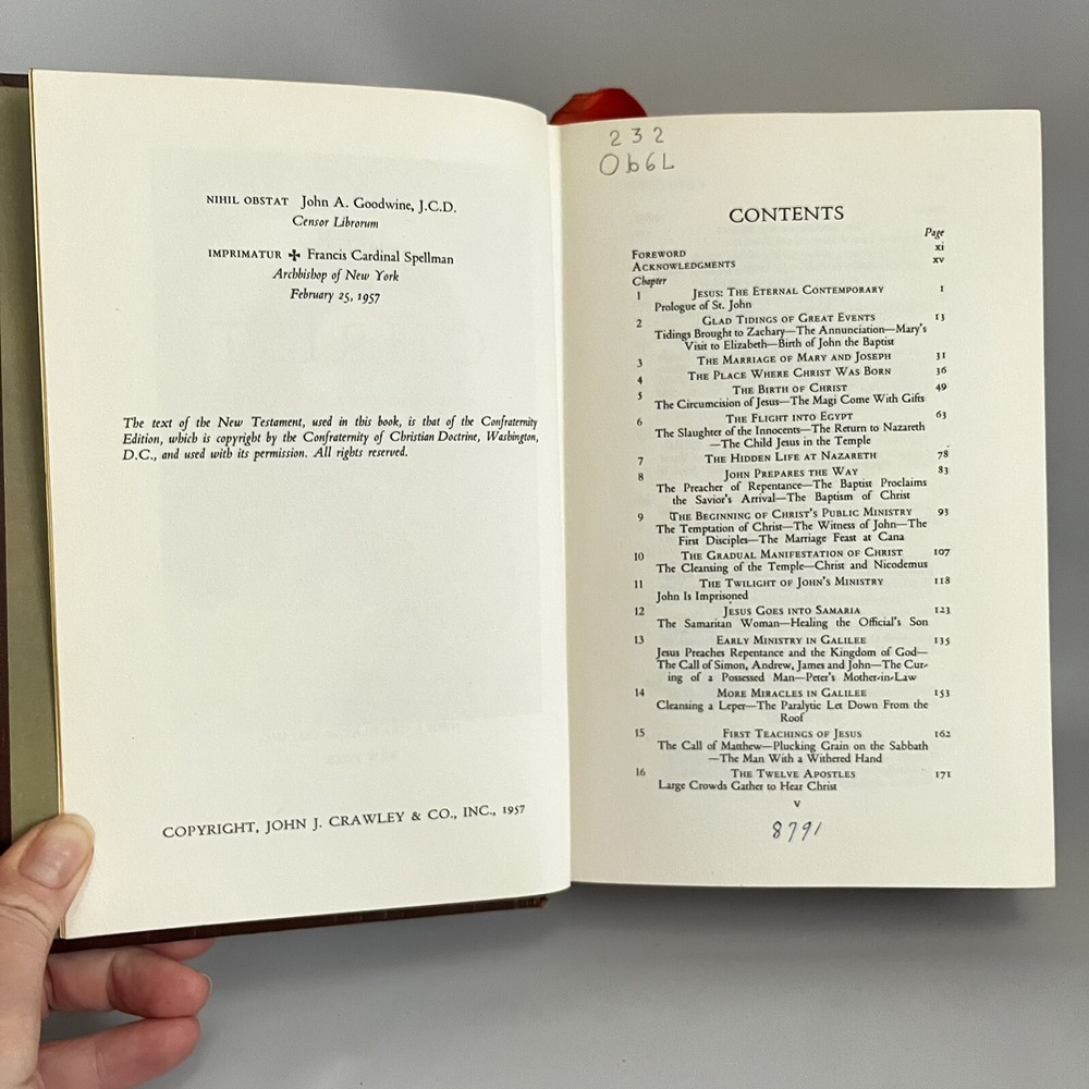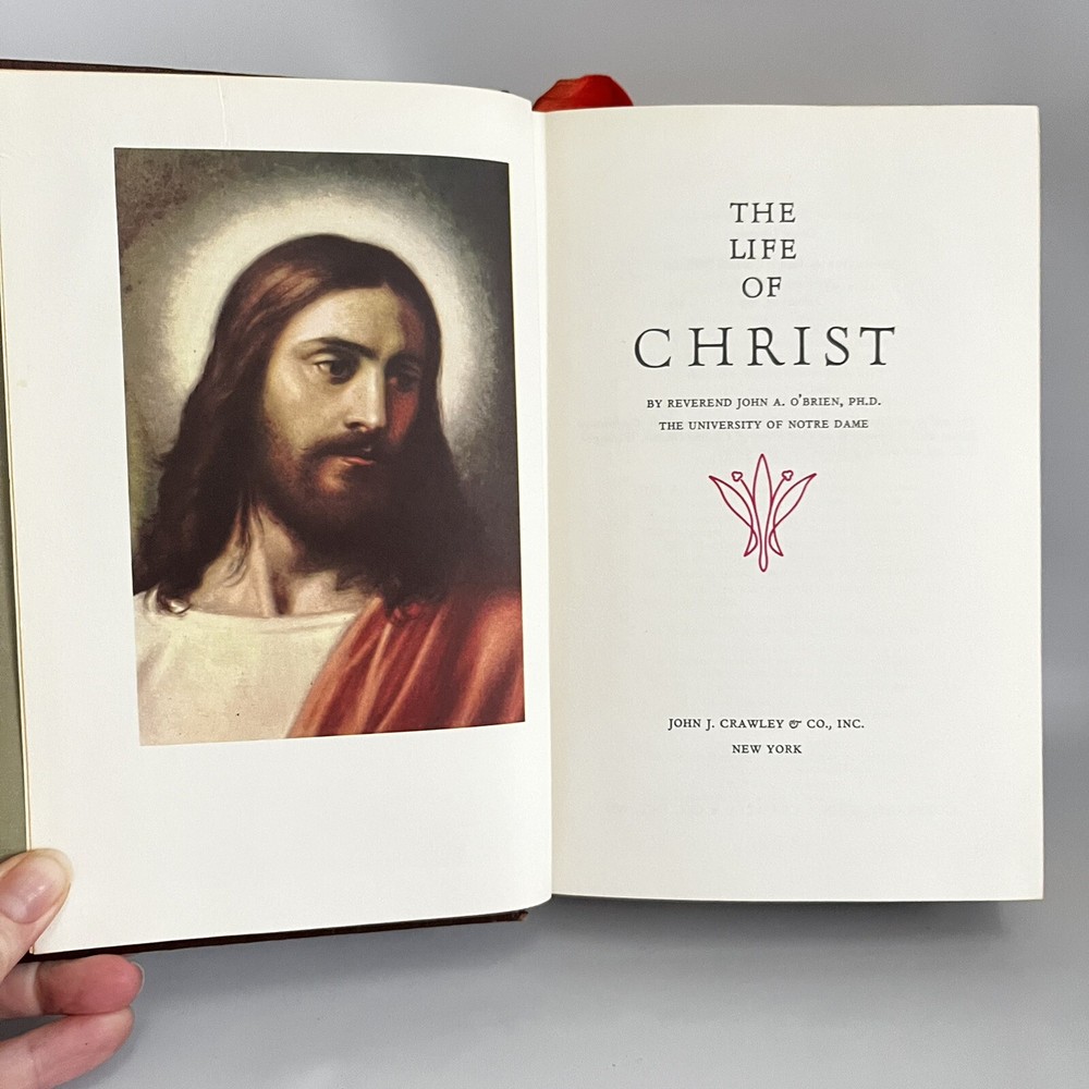 THE LIFE OF CHRIST by John A O'Brien (1957) Embossed HB Leatherbound Illustrated Fair condition. Library DISCARD....