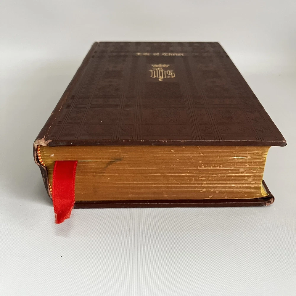 THE LIFE OF CHRIST by John A O'Brien (1957) Embossed HB Leatherbound Illustrated Fair condition. Library DISCARD.
