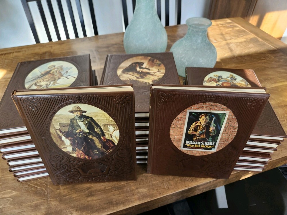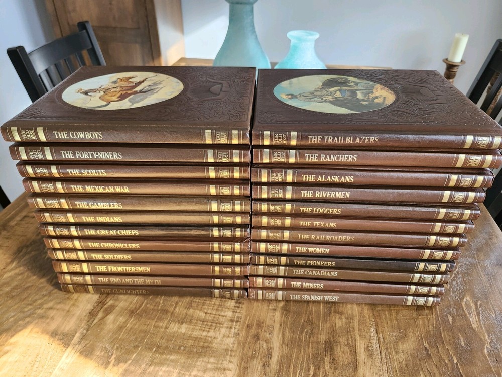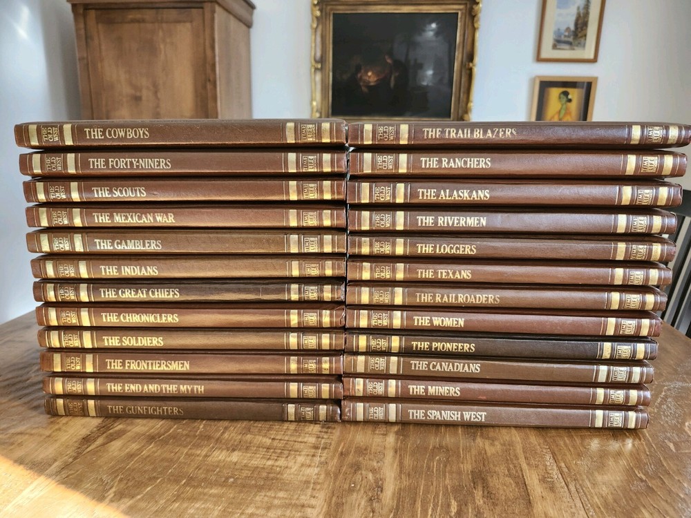 I have up for your consideration a (24) volume set of The Old West, published by Time Life Books. This set is complete, except for (2) missing books, that are The Townsmen and The Expressmen. this great collection is very clean, with tight binding, flat covers, front & back, with very minimal shelf wear. There are small back cover indentations on 2 to 3 books, slight discoloration on the top of pages for 2 volumes (see last pic), The Railroaders volume has slight wavy pages on outer edge for about the third of the pages from evidence of water, but having said that, the set overall is in very nice condition, with gold gilding in great shape as well. No inscribing, folding, or tears for interior pages. Overall grading for set would be very fine to very fine + I can provide additional pictures at anytime to confirm higher grade of this collection. Shipping within the Untied States will be free for Canada Post Expedited Parcel, which has about a 10 to 15 business day lead time, and comes complete with tracking number & insurance. Shipping within Canada will be free for Canada Post Regular Parcel, which will come with tracking number & insurance. This set will be packed very securely to ensure safe arrival to the winning bidder. As always, thanks so much for stopping by, and please check out other collectibles that I am currently offering. Will always combine on shipping to save money for buyers.