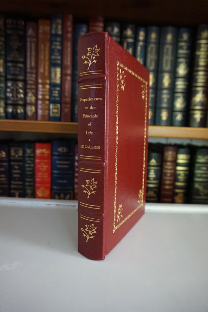 This book has been photographically reproduced from the 1813 edition. TITLE: Experiments on the Principle of Life AUTHOR: M. Le Gallois DATE: 1994 PUBLISHER: Gryphon Editions SERIES: The Classics of Neurology and Neurosurgery Library CONDITION: Full leather bound edition. Raised bands on spine with gilt lettering. Gilt page edges and cover design. Ribbon page marker. Marble design endpapers. Book is new and sealed in publishers shrinkwrap.