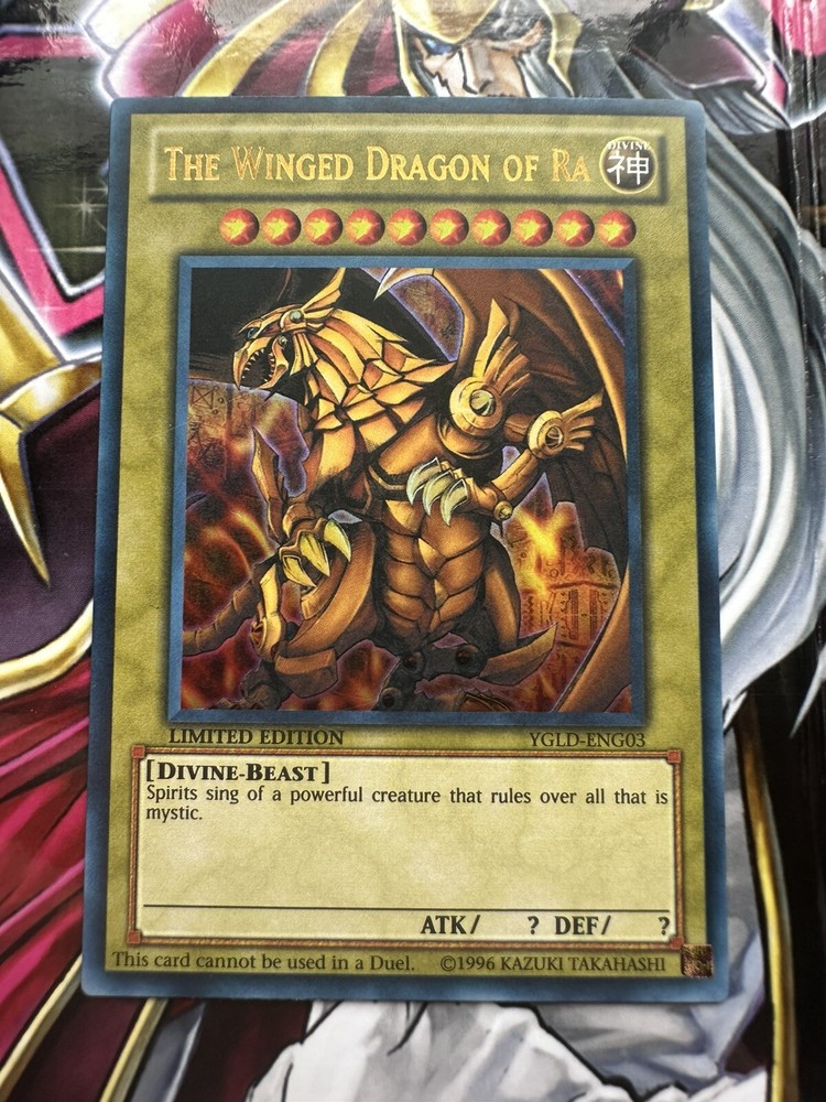 x1 Copy of The Winged Dragon of Ra from the King of Games: Yugi's Legendary Decks set (YGLD-ENG03) This card is near mint, ultra rare, and limited edition
