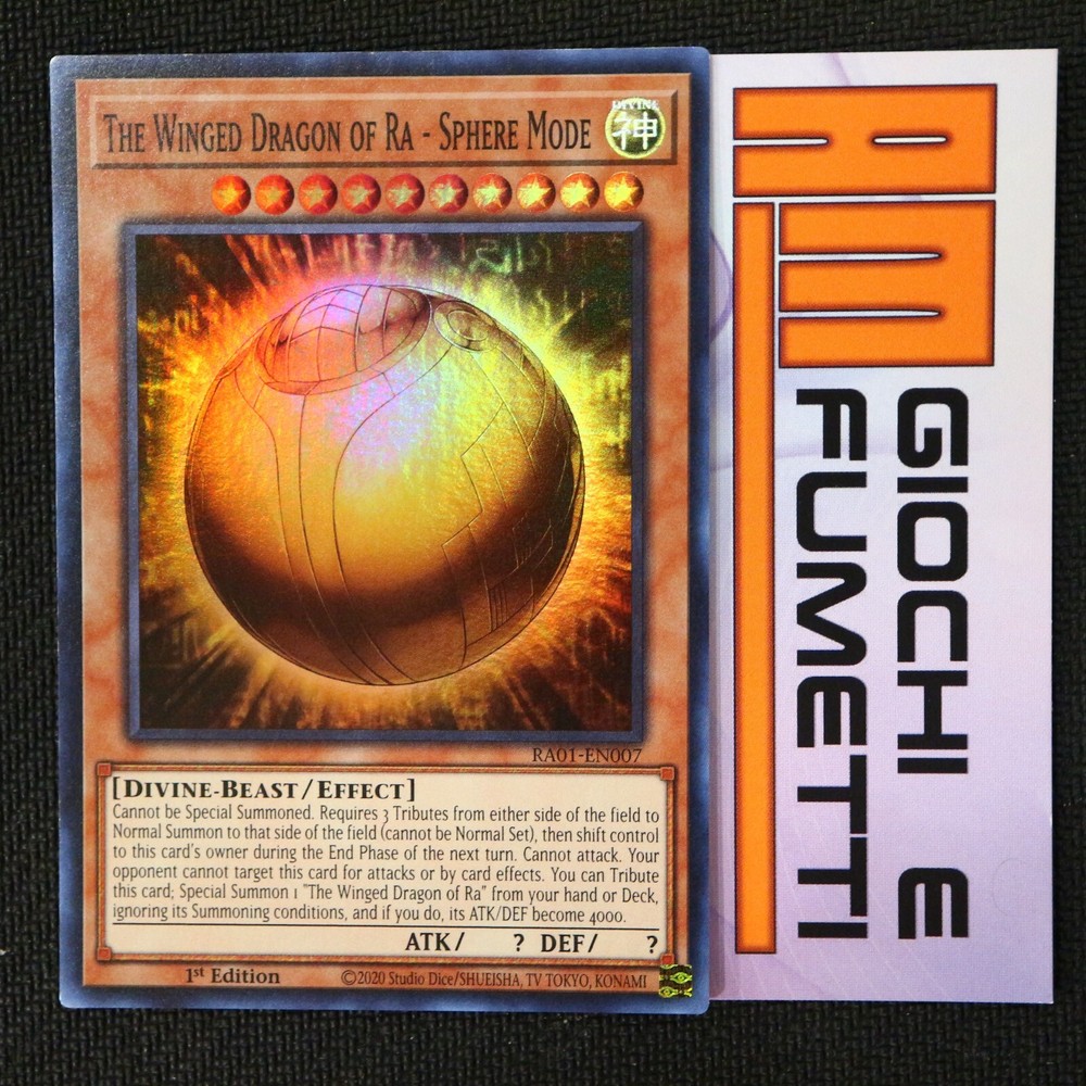VENDO: " THE WINGED DRAGON OF RA - SPHERE MODE " CONDIZIONI : NEAR MINT RARITA : SUPER 1° Edizione LINGUA: INGLESE FOTO REALE DELL'OGGETTO CHE STATE ACQUISTANDO CLICCA SULLA IMMAGINE PER INGRANDIRLA COSI DA VEDERE MEGLIO LE CARTE IN VENDITA! VISITATE IL MIO NEGOZIO EBAY, CI SON DECINE E DECINE DI CARTE!!! carte originali Yu-Gi-Oh! al 100% CONDIZIONI PER L'ACQUISTO: IL PACCO VERRA' SPEDITO CON ADEGUATE PRECAUZIONI E SARA' RINTRACCIABILE ON-LINE SUL SITO DELLE POSTE DOPO 4 GIORNI DALL'ACQUISTO DELL'OGGETTO, SE NON VERRA' PAGATO APRIRO' UNA CONTROVERSIA PER OGGETTO NON PAGATO RICHIEDO MASSIMA SERIETA' TABELLA CONDIZIONI MINT/NEAR MINT - la carta è praticamente perfetta NEAR MINT - la carta non è perfetta, presenta piccolissime imperfezioni difficilmente visibili o occhio nudo (occorre una lente) EXCELLENT - Piccoli segni di usura in alcuni punti della carta GOOD - Segni di usura sui bordi LIGHT PLAYED - Segni di usura derivanti dall'uso occasionale della carta senza bustine protettive PLAYED - Segni di usura evidenti derivanti dall'uso regolare della carta senza bustine protettive SCRATCH - usura molto visibile sui bordi e in altri punti della carta POOR - Usura elevata, la carta presenta pieghe, pressioni e segni di usura molto elevati CLICCA QUI E VISITA IL MIO NEGOZIO! CLICCA QUI E AGGIUNGIMI AI TUOI VENDITORI PREFERITI CLICCA QUI E RICEVI LA NEWSLETTER Seguici anche sui nostri canali Social Facebook, Instagram e Tik Tok