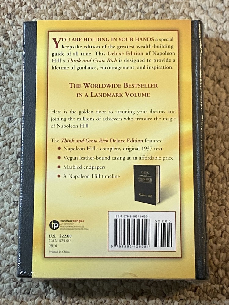 THINK AND GROW RICH by Napoleon Hill Vegan Leather Bound Deluxe Edition SEALED. New in factory packaging. See the pictures and contact me if you have any questions.