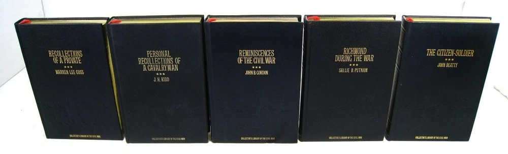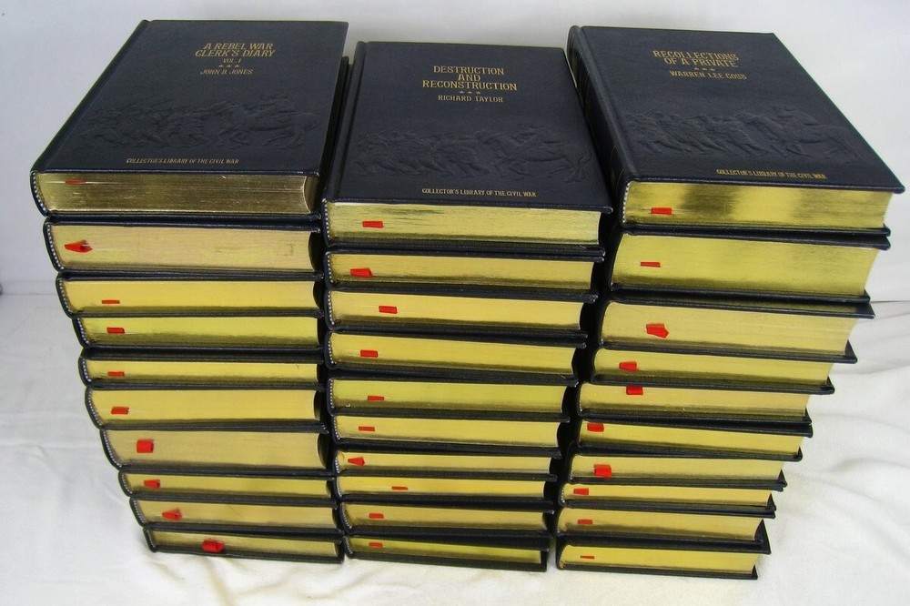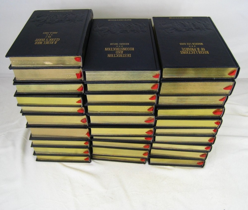 TIME LIFE Collector's Library of the Civil War COMPLETE SET 30 Volumes * No dust jackets as issued. All in good or better condition with only some minor shelf wear to the boards and some minor blemishes to the gilt along the outside pages. Most look and feel never read. Only flaw one volume has three pages in the back of the book with the edge creased. No marks on text, gilt lettering on front board, which is also decorated with an embossed images, all page edges are gilt, each book has a placeholder ribbon and decorated inner boards & free end papers. The pages have no creasing, tearing, names or initials, store stamps or, missing pages. All but eight have their Collector's Notes tucked inside. Binding is firm, tight and square . Note photos for your condition analysis. Will ship in two books to reduce weight. * Money Back Guarantee! * Next Day Shipping! * Quick response to questions * Photos of actual items you will receive * This transactions may be subject to applicable sales taxes THANK YOU FOR VISITING