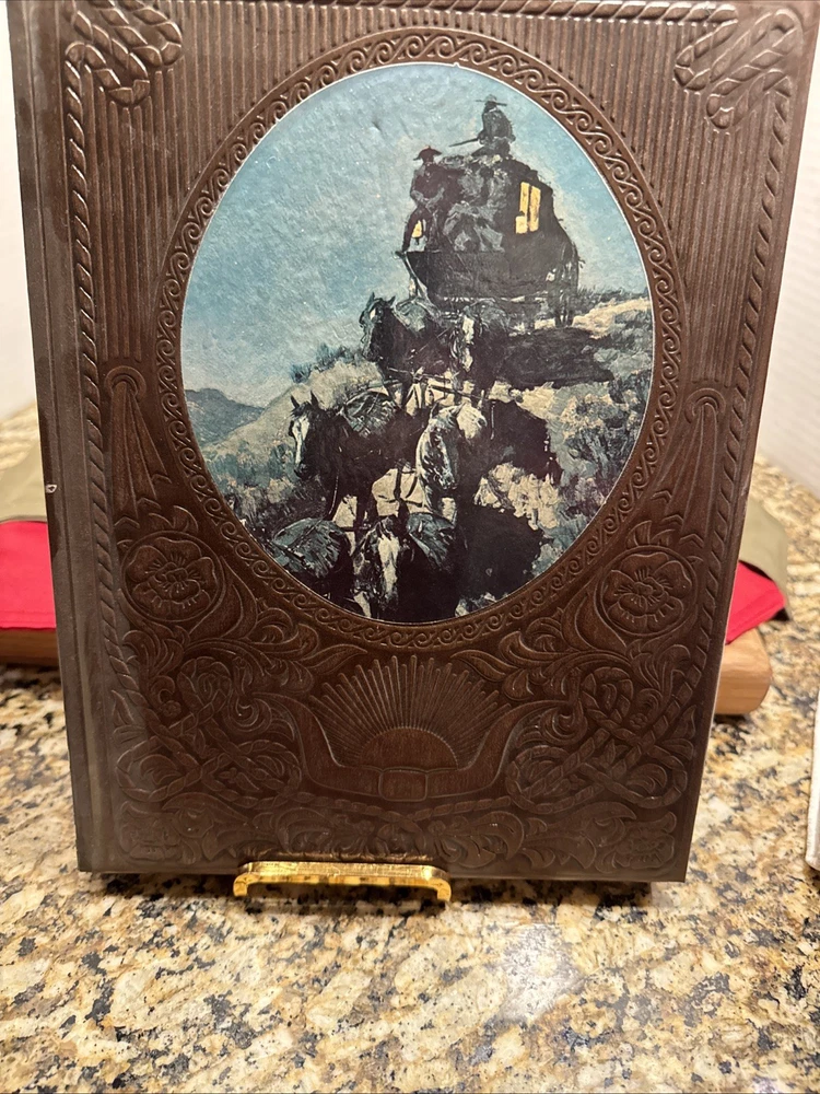 The Time Life Series Set "The Old West" is a vintage collection of 20 leather-bound volumes, each measuring 8.5 x 11 inches, that provide a comprehensive history of the American West in the 18th and 19th centuries. This first edition set, published in 1973, offers a detailed account of the era through nonfiction narratives and illustrations, making it suitable for young adults, ages 9-12, and adults interested in American history and Westerns. The faux leather-bound books are perfect for those looking to delve into the realism literary movement and explore the rich history of the Old West. The Volumes include The Indians, The Chroniclers, The Scouts, The Ranchers, The Alaskans, The Soldiers, The Miners, The Loggers, The Spanish West, The Canadians, The Rivermen, The Great Chief, The Women, The Pioneers, The Cowboys, The Gamblers, The Expressmen, The Texans, The Townsmen, The Gunfighters