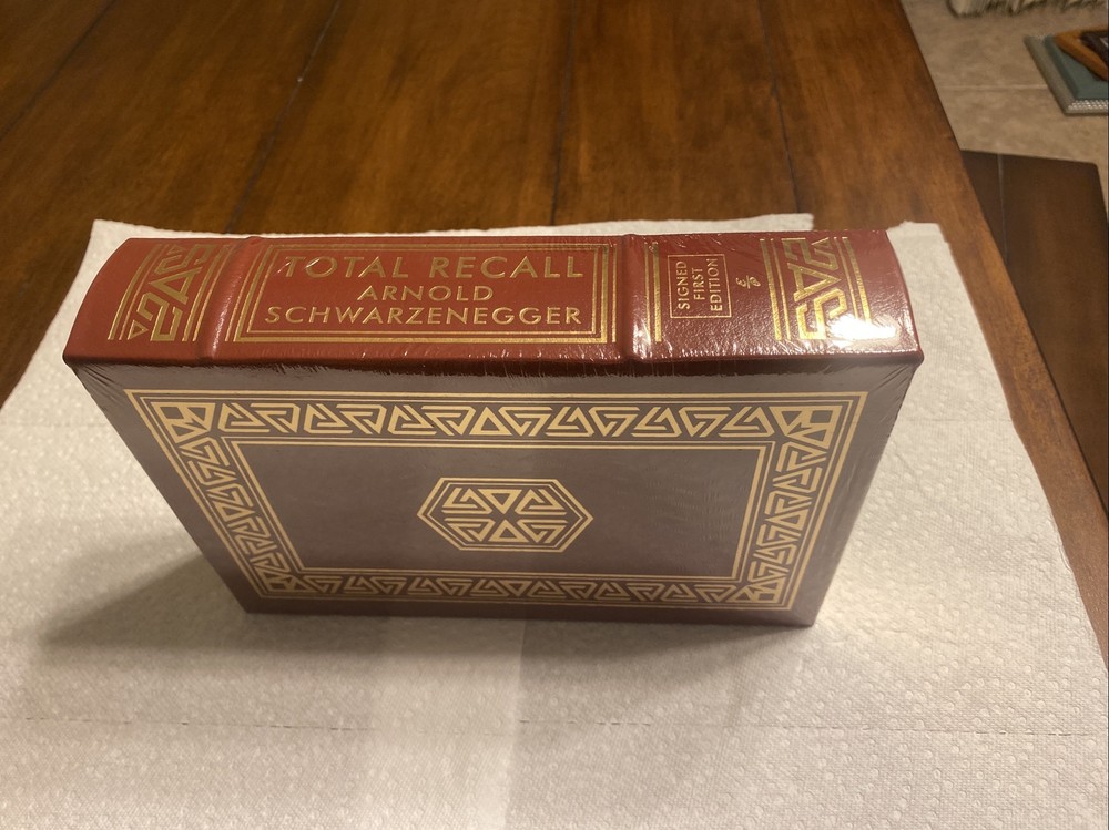 This limited-edition signed copy of TOTAL RECALL is a must-have for any Arnold Schwarzenegger fan or collector. The Easton Press leather-bound book is pristine, still sealed, and personally autographed, making it a rare treasure. It’s a captivating read, covering his incredible journey from bodybuilding to Hollywood stardom and politics. A true collector's gem!