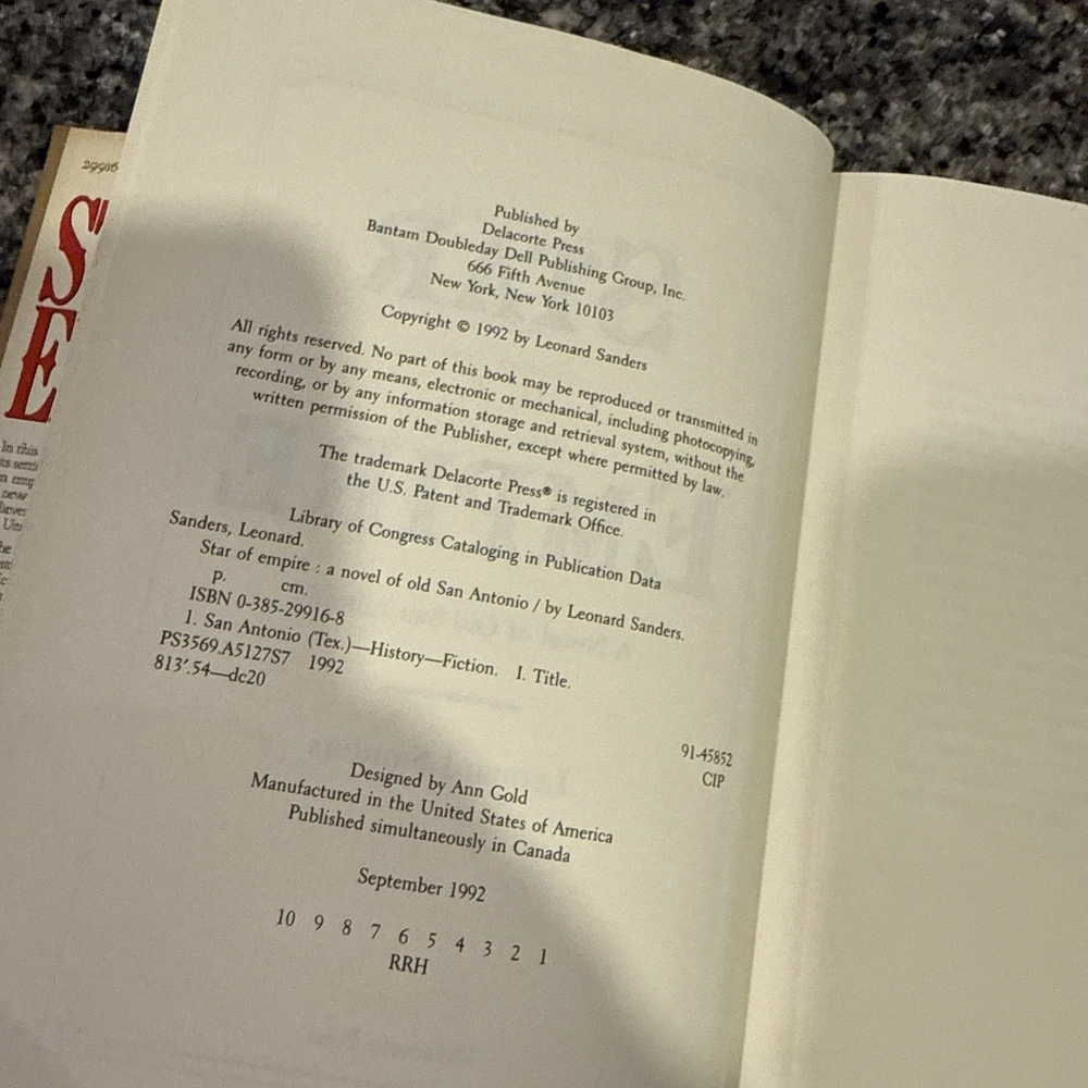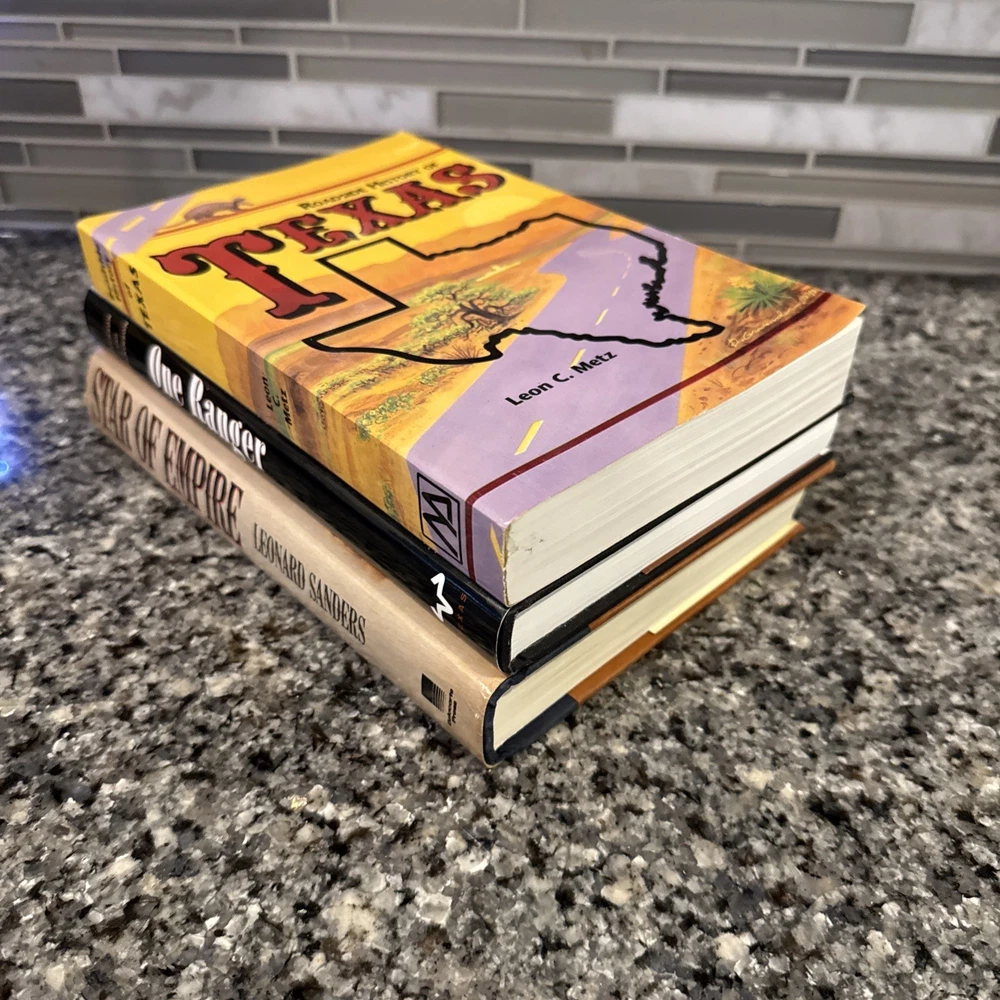 Texas Spirit Book Lot (3) | One Ranger Memoir, Roadside History, Star of Empire Novel | Western Americana Description: Immerse yourself in the heart and soul of Texas with this unique 3-book hardcover bundle — a powerful blend of memoir, folklore, and historical fiction. These volumes capture the grit, pride, and stories that shaped the Lone Star State, from its roads and rangers to its early frontiers. Included Titles: 1. One Ranger: A Memoir by H. Joaquin Jackson & David Marion Wilkinson • First-hand account of life as a legendary Texas Ranger • Hardcover with dust jacket; very good condition • Published by University of Texas Press 2. Roadside History of Texas by Leon C. Metz • A guided journey through Texas history by highway • Softcover in excellent condition • Packed with local legends, events, and regional charm 3. Star of Empire: A Novel of Old San Antonio by Leonard Sanders • Sweeping historical fiction set during Texas’ fight for independence • Hardcover with dust jacket; very good condition • Rich period detail and dramatic storytelling Genre & Subject Tags: • Texas History • Western Americana • Memoir & Biography • Historical Fiction • Travel & Roadside Folklore • Regional Collectibles Perfect For: • Texas history buffs and native Texans • Readers of American Western culture • Unique bookshelf or cabin/lodge décor • Gifts for lovers of frontier stories and state pride Condition Summary: All books in very good condition. Two are hardcovers with dust jackets, one is a softcover. No writing or major wear. Clean, collectible, and shelf-ready.