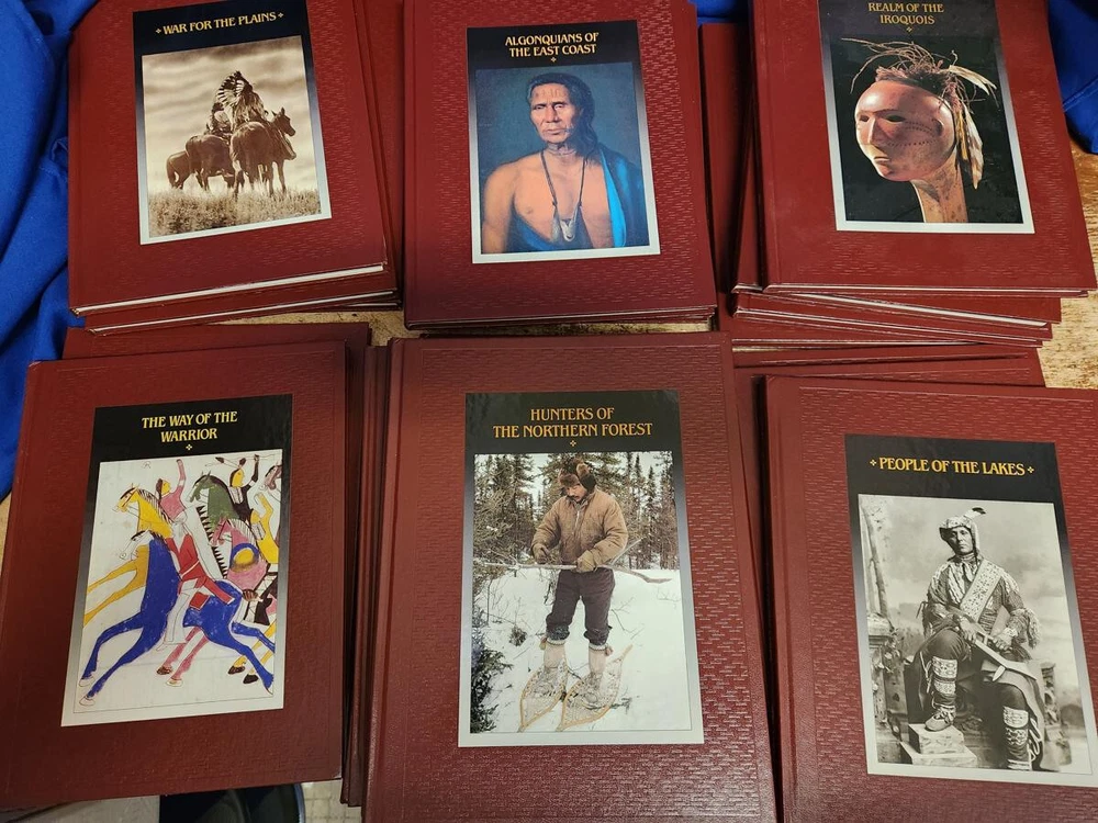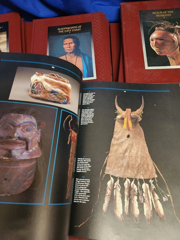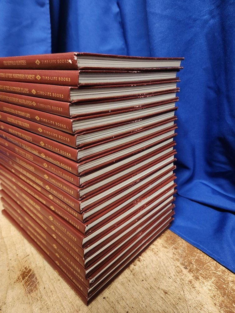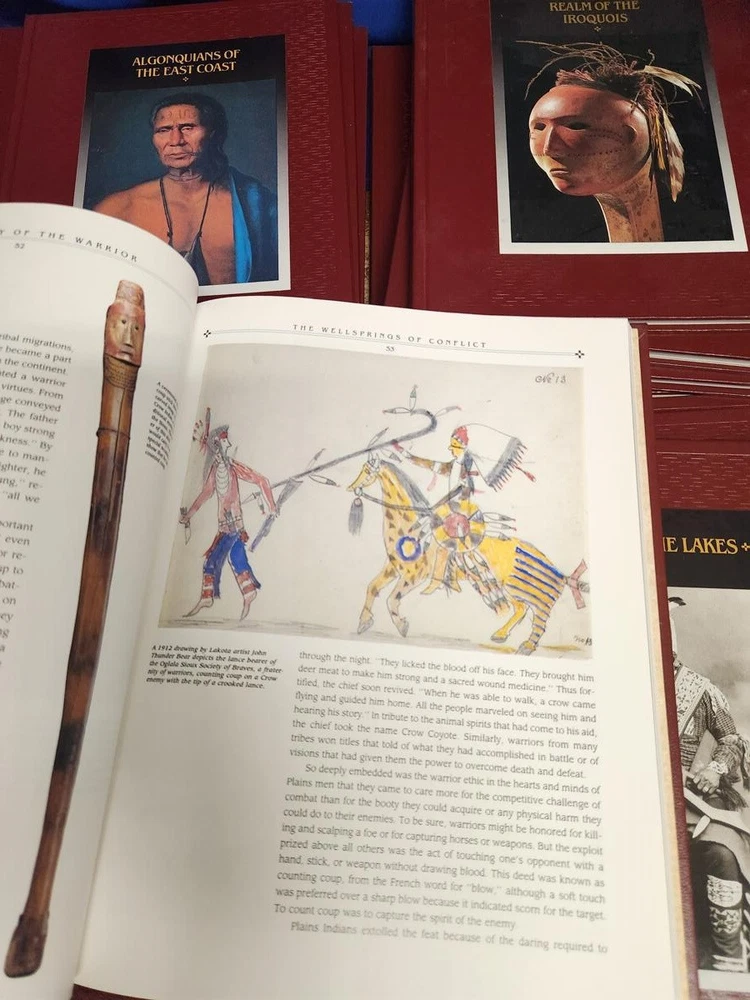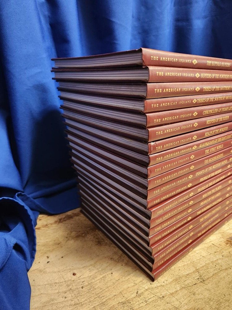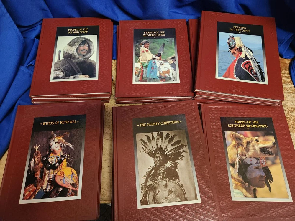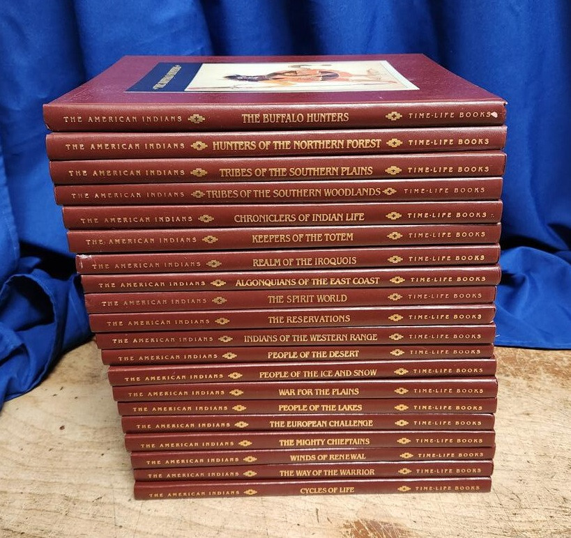 For sale are 20 books of the set of "The American Indians" series, published by Time-Life books from 1992 -1996. Books are in Very Good Condition, small nick in one and some damage to the corner to one other book, rest has no damage (see pictures) The title of the books are: - Algonquians of the East Coast - The Buffalo Hunters - Chroniclers of Indian Life - Cycles of Life - European Challenge - Hunters of the Northern Forest - Indians of the Western Range - Keepers of the Totem - The Mighty Chieftains - People of the Desert - People of the Ice and Snow - People of the Lakes - Realm of the Iroquois - The Reservations - The Spirit World - Tribes of the Southern Plains - Tribes of the Southern Woodlands - War for the Plains - The Way of the Warrior - Winds of Renewal Pictures are from the actual copy that is offered for sale.