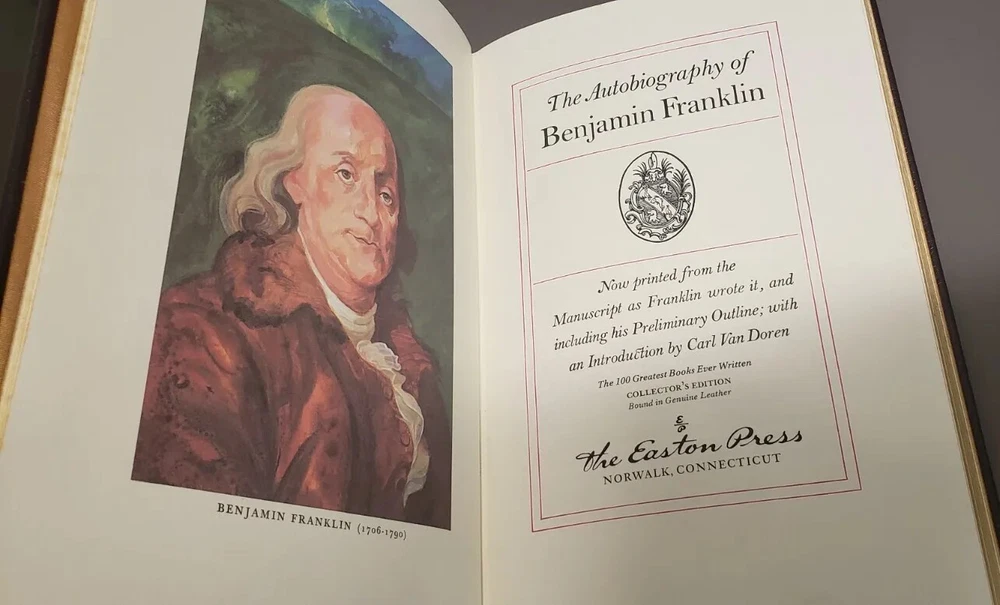 The Autobiography Of Benjamin Franklin [1976 Easton Press Collector’s Edition]. Book is in very good condition. no writing in book; no highlights in book; pages good; book in excellent reading condition; no pages missing; no dog ears; cover has shelf wear Please see all pictures Please Email with any questions or comments Will mail via media mail