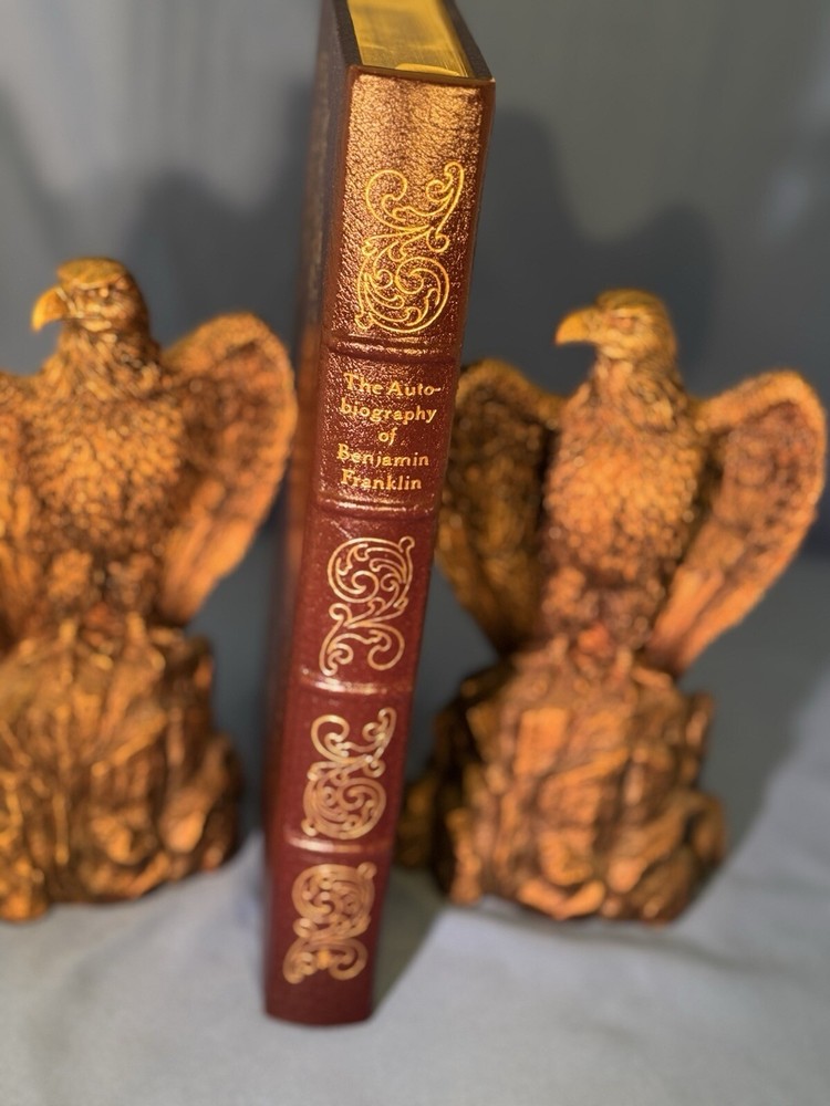 The product is a collector's edition of "The Autobiography of Benjamin Franklin" published by The Easton Press in 1976 in Norwalk, Connecticut, USA. This original leather-bound book is written in English and focuses on the biography and autobiography of Benjamin Franklin, a prominent figure in North American history. It is a special edition with no mention of being signed or personalized, making it a valuable addition to any collection of antiquarian and collectible books. Very fine condition with the exception that there is a bookplate from the original owner.