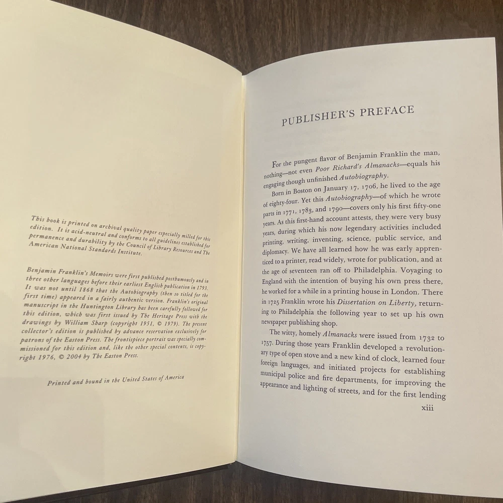The Autobiography of Benjamin Franklin (Easton Press, 1976) Genuine Leather. Shipped with USPS Media Mail.