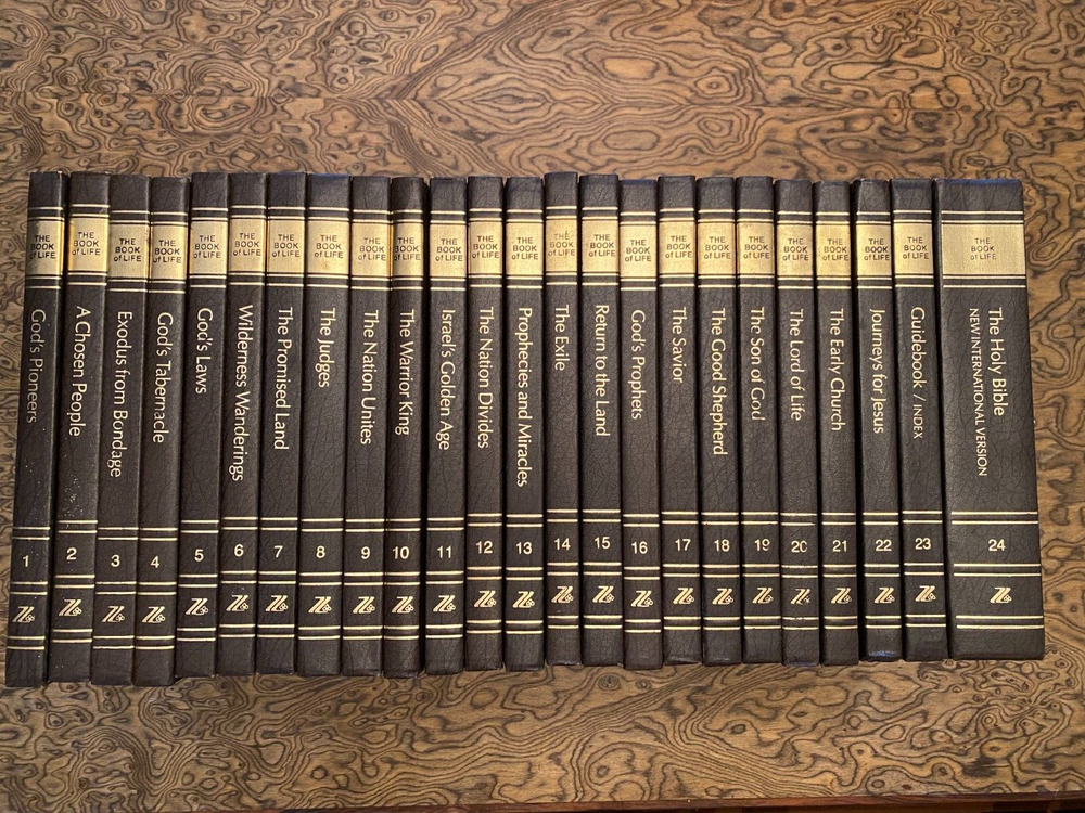The Book of Life from Zondervan NIV Complete Set of 24 Books Bible Excellent. Faux Leather-bound. All volumes are in excellent condition and have been packed away for many years. No markings, stains, ...
