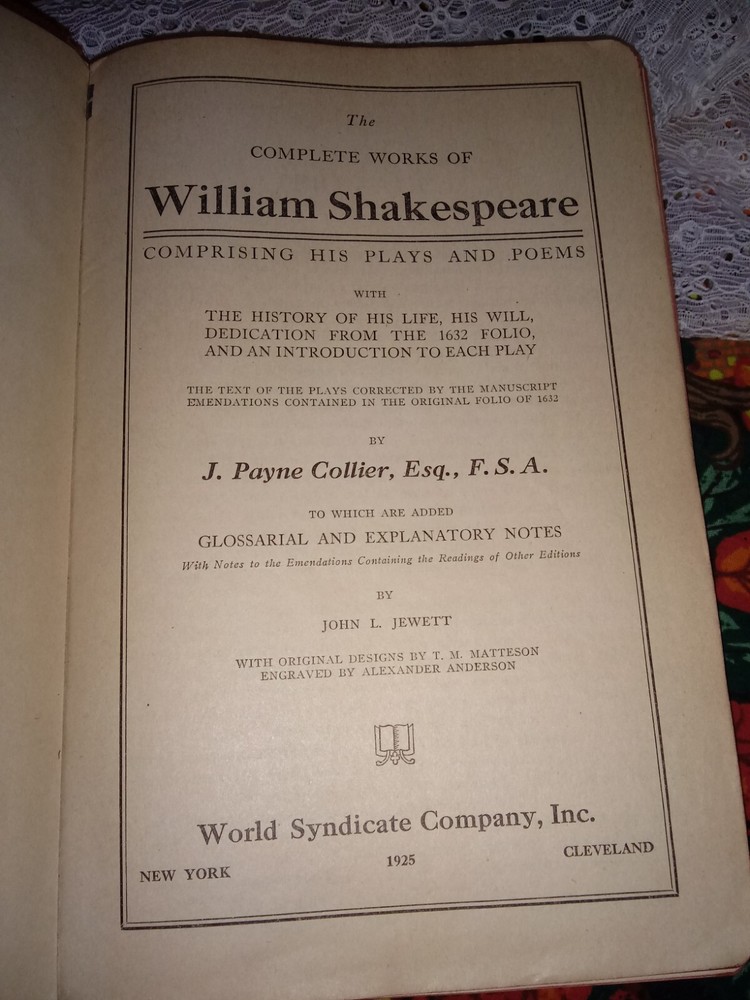 The Complete Works Of William Shakespeare Plays, Poems & His Life History 1925.