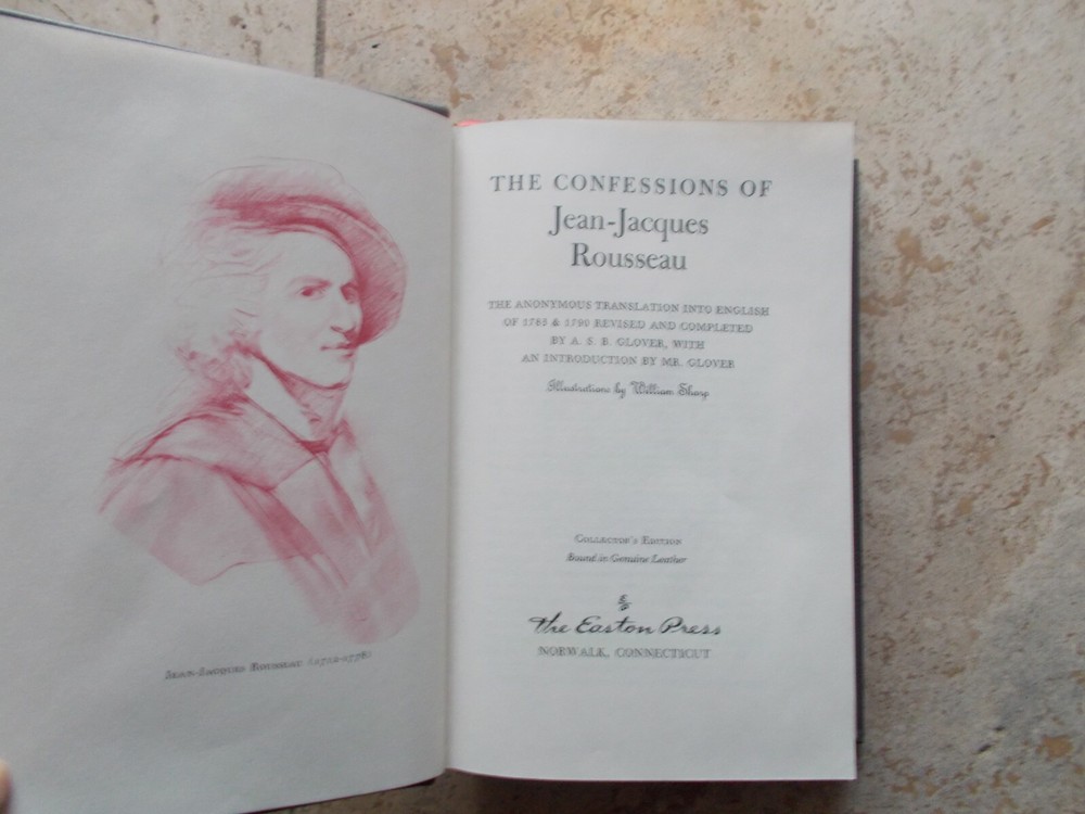 Welcome, this The Confessions of Jean-Jacques Rousseau first edition, leather bound, collector's edition 1980 book is in good condition! Gift ready! The book has gold accent pages for a beautiful finish. You can have this beautiful book for Christmas or for yourself. No disappointments. Thank you for looking! Good luck!