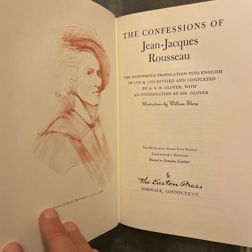 The Confessions of Jean-Jacques Rousseau Collector's Edition Easton Press See Pictures. The book is in very good condition. The cover is clean and little wear. The Gold gilding has no wear marks. The pages and binding is excellent condition.