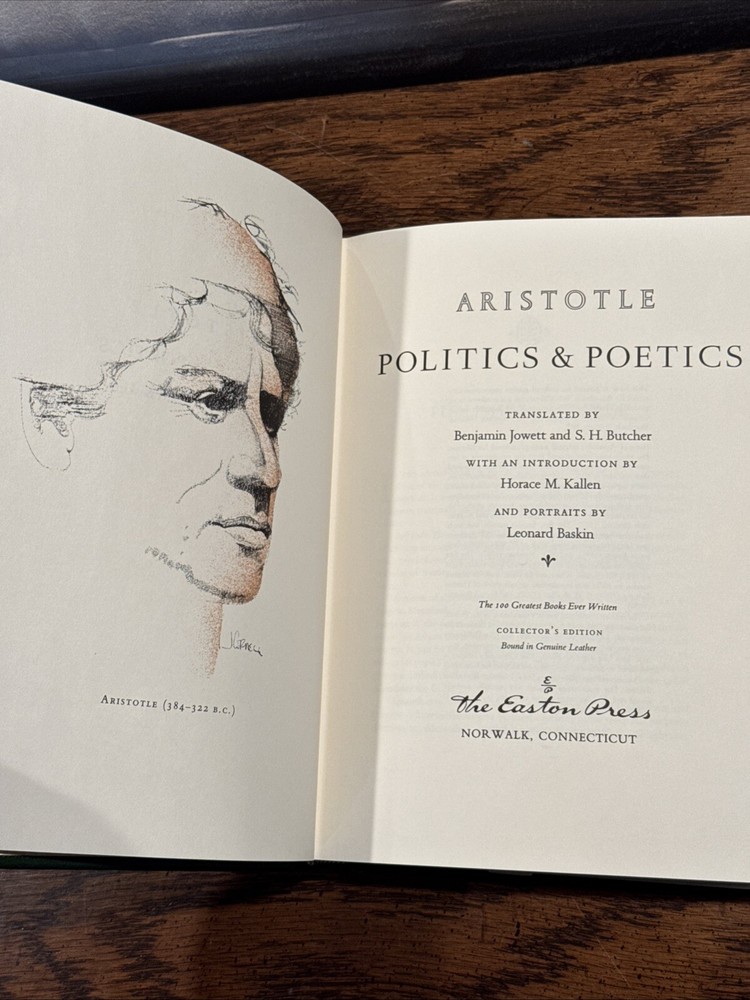 The Easton Press- Politics Poetics. Mint. Leather Bound. Never Read Or Opened. Part of the 100 greatest books ever written collection. Ask questions I have the entire collection available for sale. Purchased in 1990. Never opened or read. Original credit card charge notification