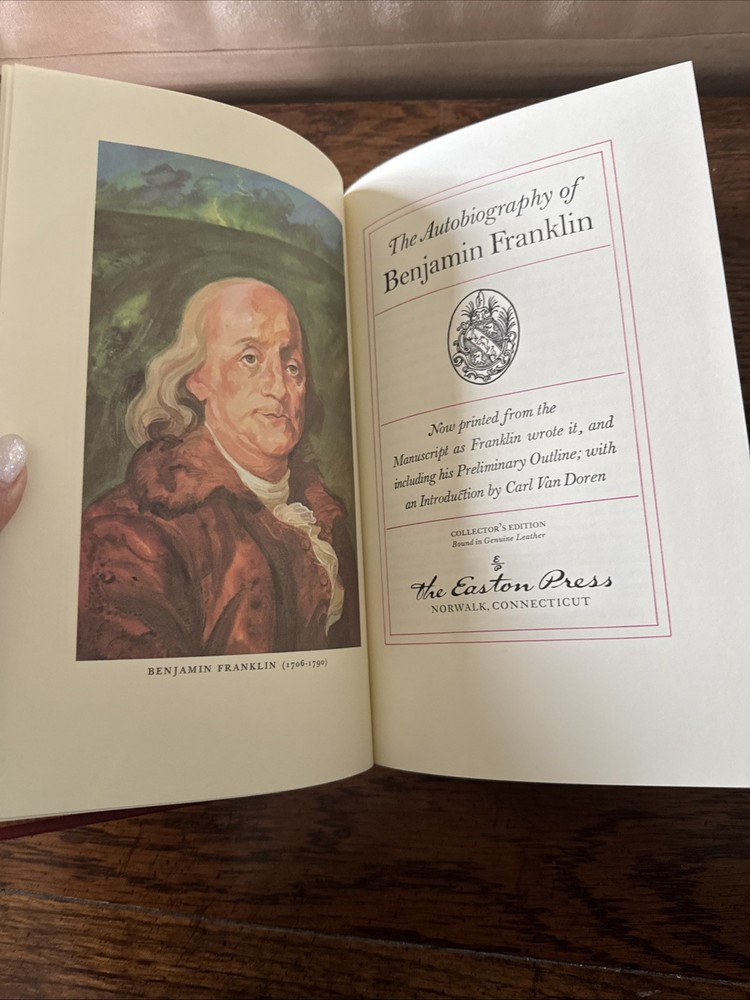 The Easton Press- THE AUTOBIOGRAPHICAL OF BENJAMIN FRANKLIN. Never opened never read. Leather bound Collectors edition. Excellent condition. Part of the 100 greatest books ever written. I have the entire collection. Check out my other listings. I purchased in 1990. Credit card notification charge shown
