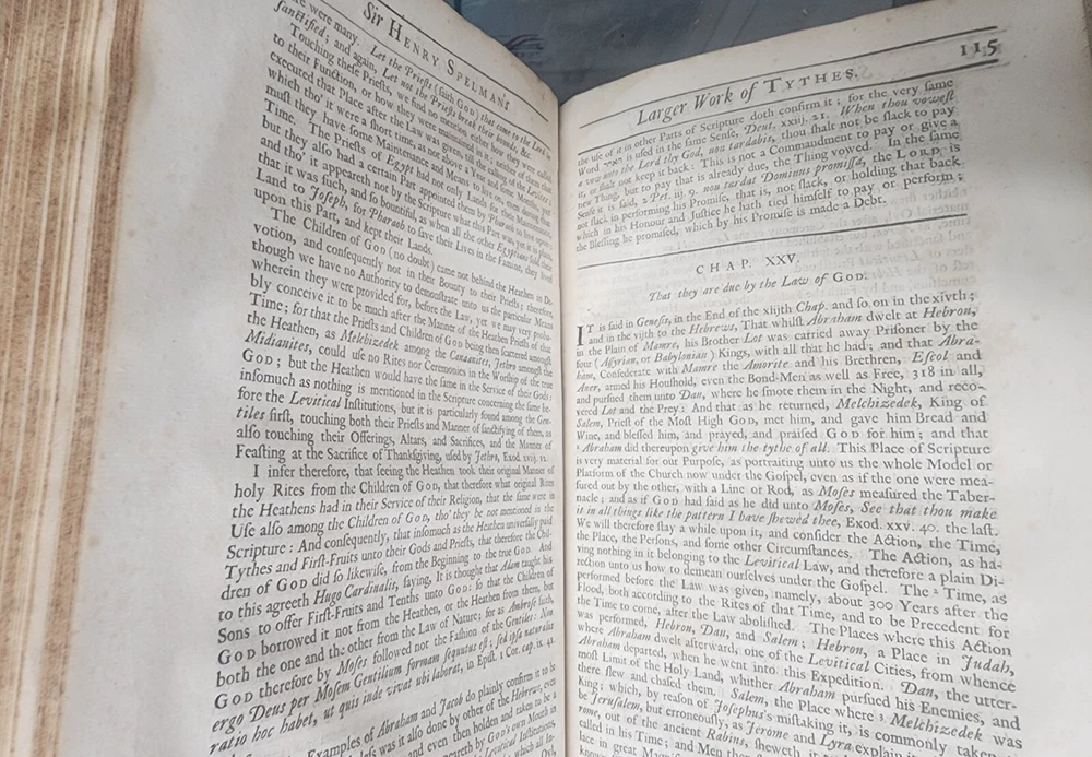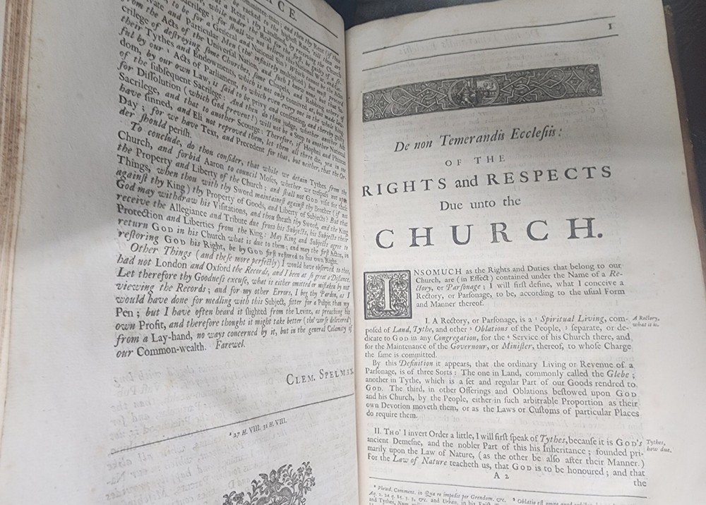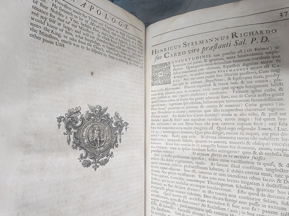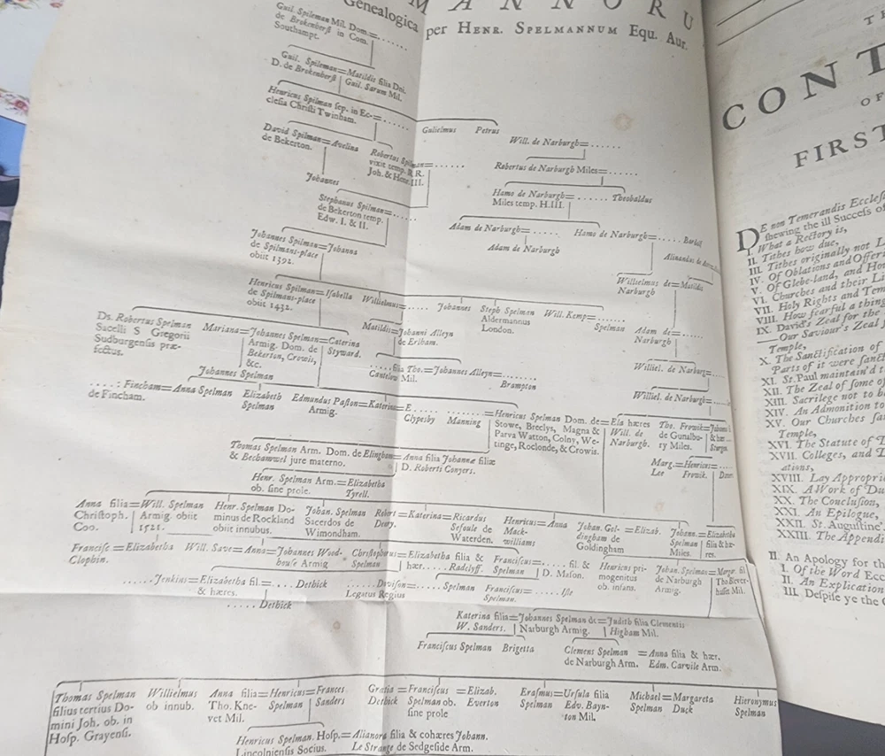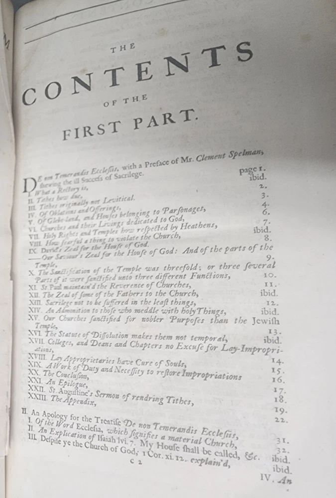 Full Tooled Leather Over Boards. Hinges Split And Tender."The English Works Of Sir Henry Spelman K. Published In His Life-Time: Together With His Posthumous Works, Relating To The Laws And Antiquities Of England: And The Life Of The Author." By The Right Reverend Father In God Edmund Lord Bishop Of London. To Which Are Added, Two More Treaties Of Sir Henry Spelman, Never Before Printed: One Of The Admiral-Jurifdiction, And The Officers Thereof: The Other Of Ancient Deeds And Charters. With A Compleat Index To The Whole. The Second Edition. London: Printed For D. Browne, Fen. & Jun. W. Mears, F. Clay, Without Temple-Bar, Fletcher Gyles, In Holborn, And T. Osborne, In Gray's-Inn. M.Dcc.Xxvii. Tooled Leather Over Boards, Raised Bands With 7 Compartments Raised And With Extra Gilt. On Spine With Title In Gilt. Folio. Evidence For Inclusion In Wythe's Library Wythe Referred To Spelman's Works In His Case Report For Field V. Harrison, "Sir H. Spelman Somewhere Condemns The Common Lawyers Of His Own Time, For The Small Acquaintance They Had With The Principles And Rationale Of Their Profession."[6] Brown's Bibliography[7] Includes The First (1723) Edition Of The English Works Of Sir Henry Spelman As The Work Intended By Wythe's Reference. He Bases The Selection Of This Title And Edition In Part On The Copy Thomas Jefferson Sold To The Library Of Congress In 1815.[8] The Wolf Law Library Followed Brown's Suggestion And Purchased A Copy Of The Same Edition.