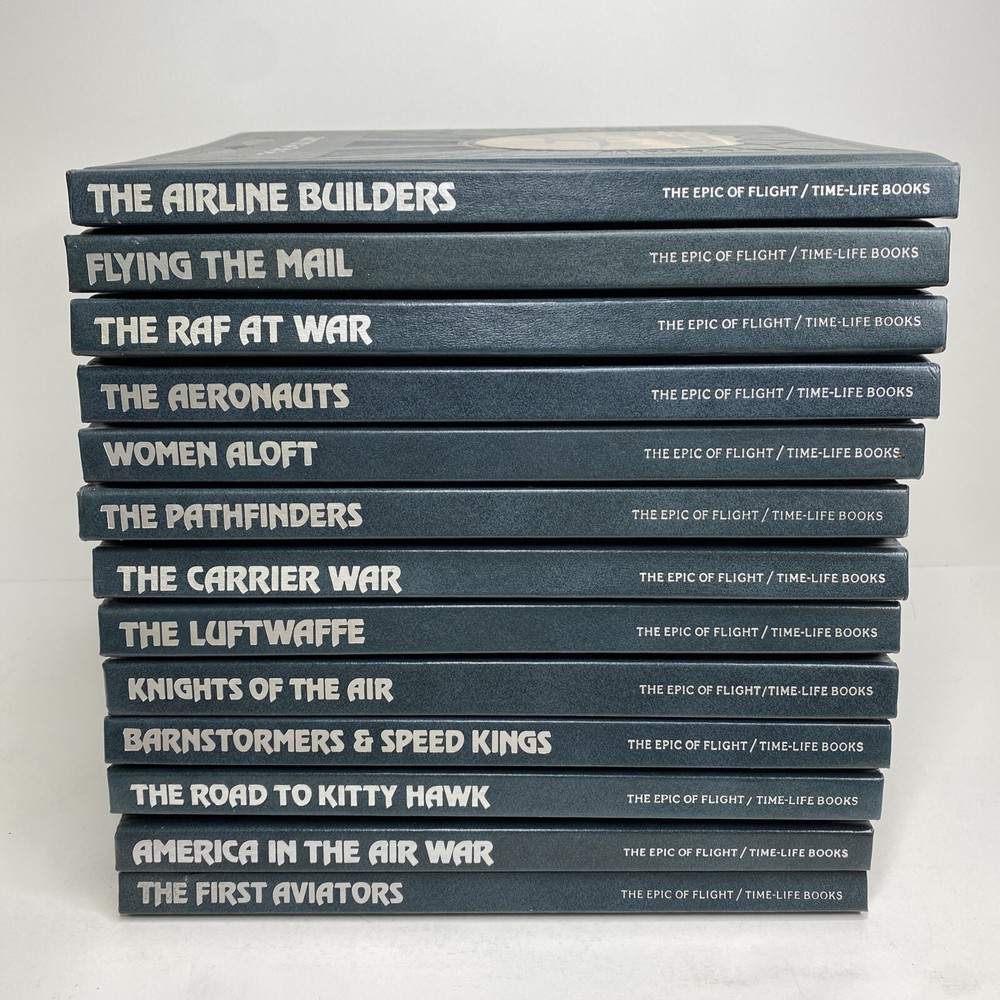 Take to the skies with this incredible set of 13 hardcover books, "The Epic of Flight" by Time Life Books. Delve into the history of flight and explore the wonders of aviation, transportation, and technology with this captivating nonfiction narrative. With mixed authors and stunning illustrations, this vintage set is perfect for young adults, ages 9-12, and adults alike. Each book is faux leather bound and features an index for easy reference. Don't miss out on this amazing opportunity to add "The Epic of Flight" to your collection today! Nice gift. Homeschool See photos for condition. Nice illustrations. 2 books have re-glued pages. 24SP