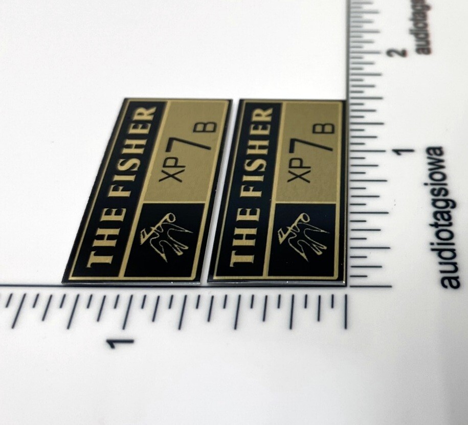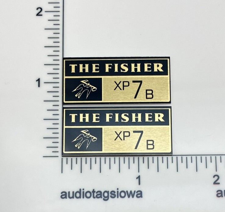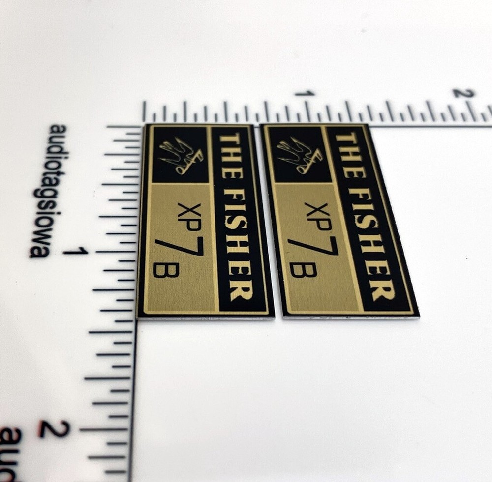 These custom Fisher XP 7b speaker badges are fantastic! The satin silver aluminum looks sleek and high-quality, just like the originals. The included double-sided tape makes installation a breeze, and the sizing is spot-on. Love that they offer free domestic shipping—great value for such a precise replacement part. Perfect for restoring vintage speakers to their former glory!