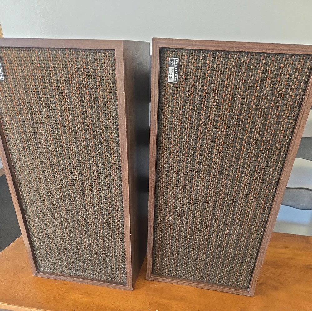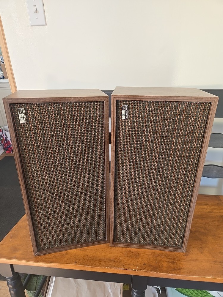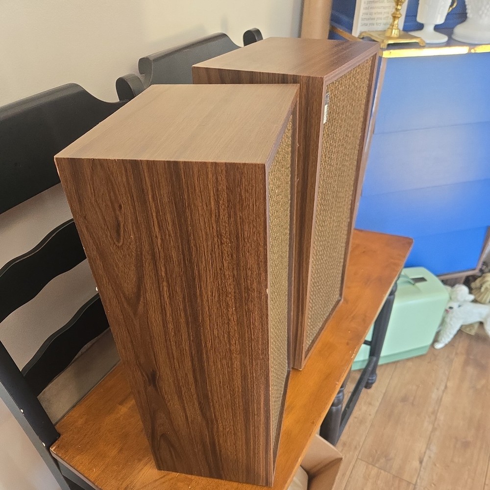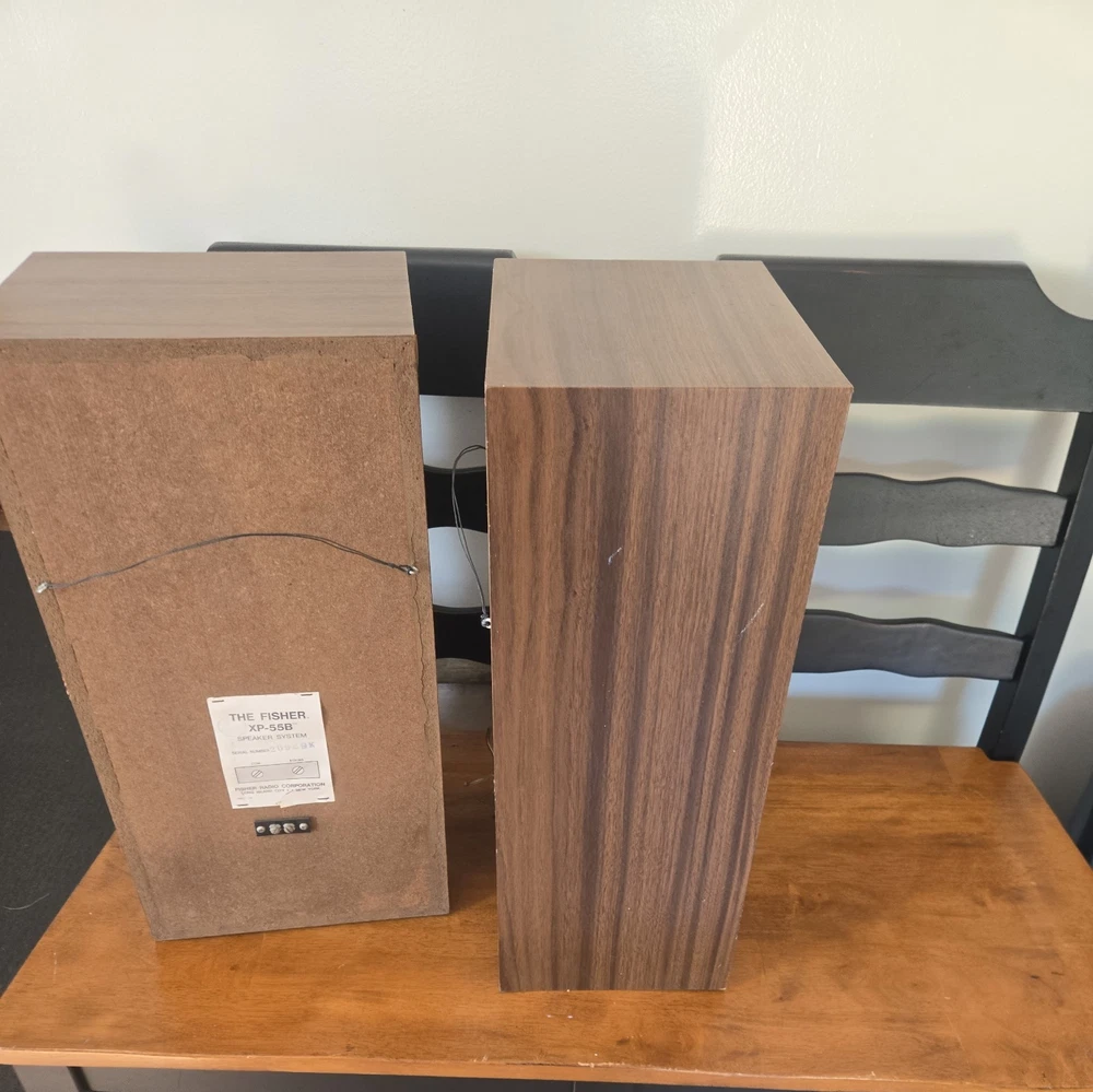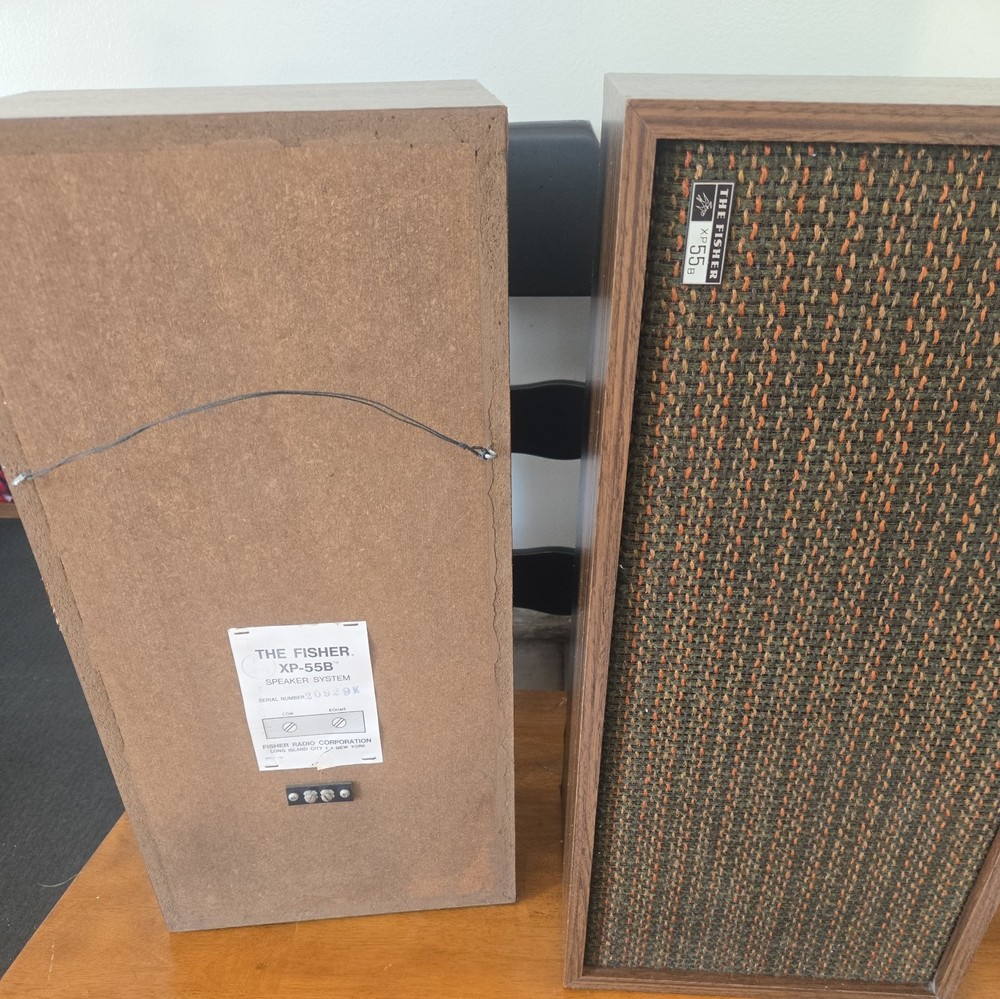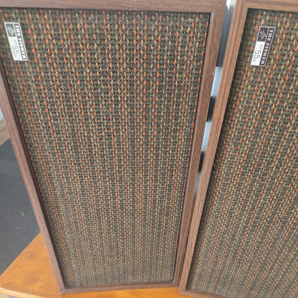 The Fisher XP-55B/Retro 70s Speakers with cool green, orange, and yellow fabric covers offer a unique and retro aesthetic for vintage audio enthusiasts. Made in Japan, these speakers feature a classic design with a vintage speaker cabinet style. The Fisher brand is known for quality and durability, making these speakers a desirable addition to any collection of vintage electronics. The bright and bold colors of the fabric covers add a fun and nostalgic touch to the overall look of the speakers.