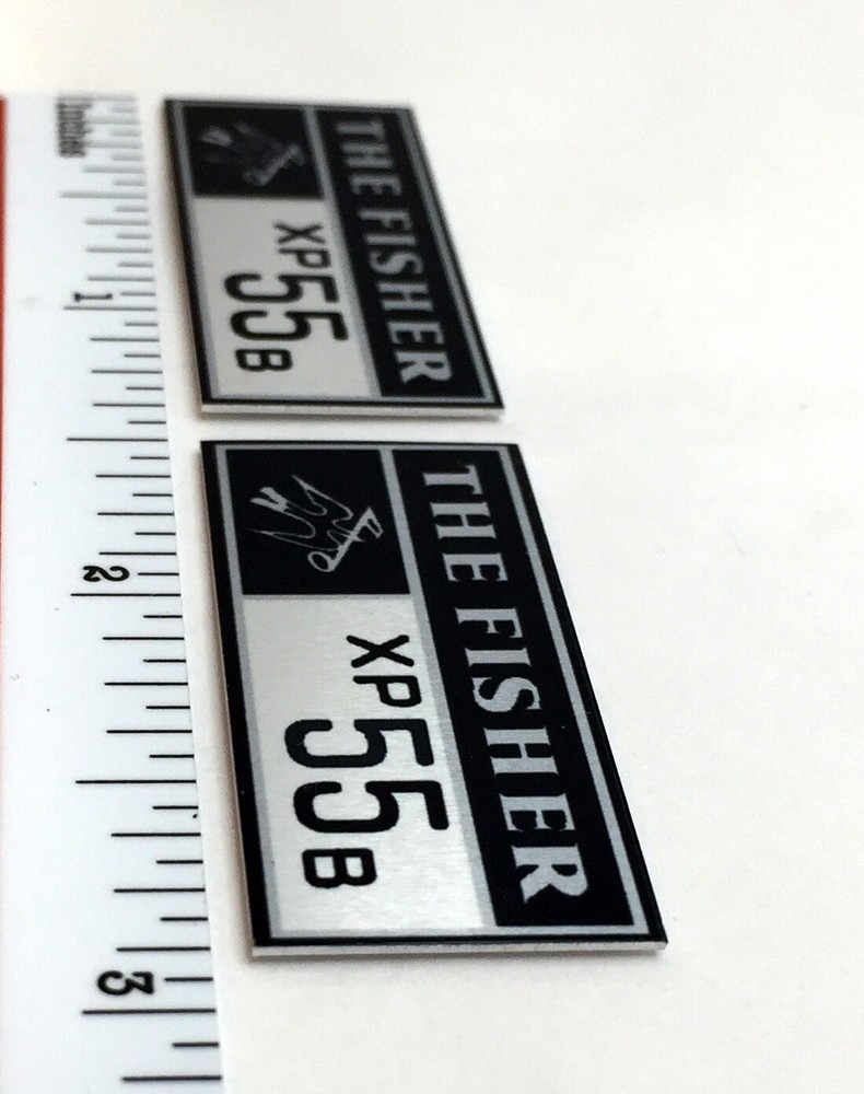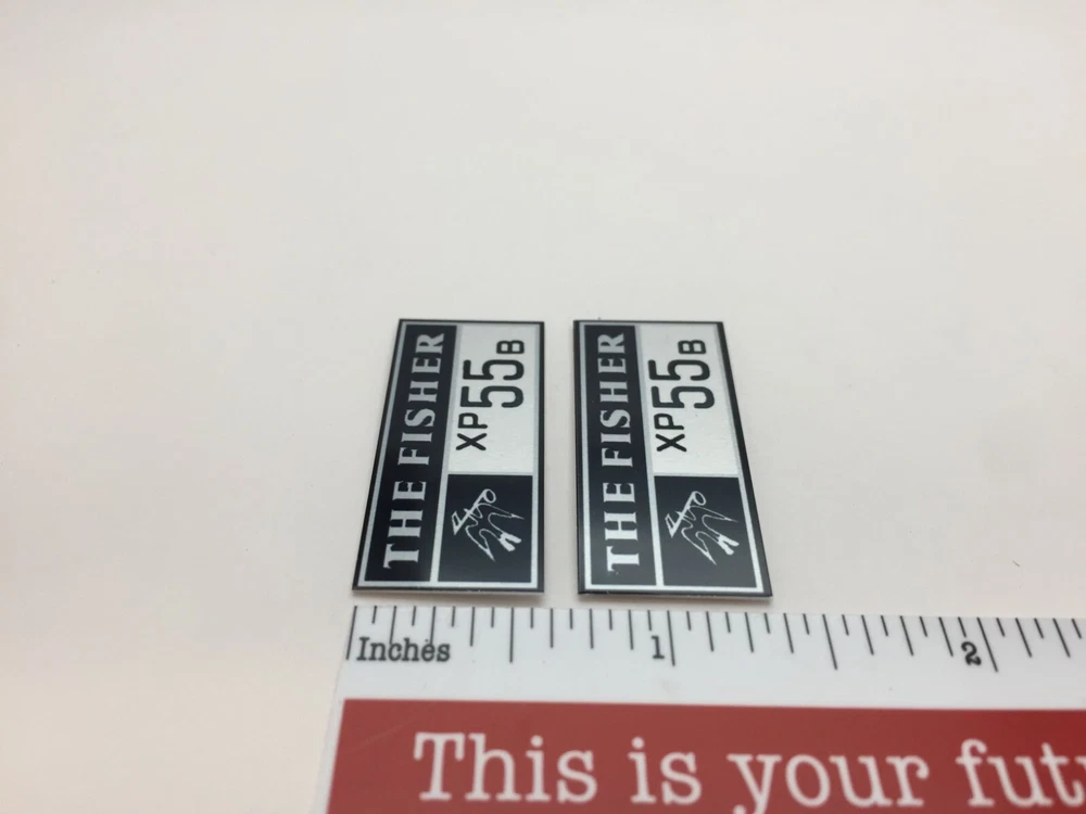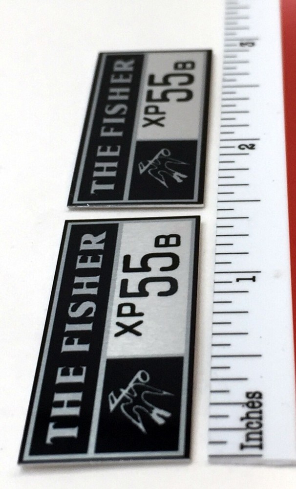 Custom made replacement speaker badges for Fisher XP55b speakers. These are made of .02" sublimated satin silver aluminium and come with double-sided tape on the back for easy attachment to any surface. They measure approximately 1-3/8" by 5/8" as shown. The price is for one pair (two) identical badges. Free domestic shipping via USPS First Class mail (55 cent stamp - no tracking) or choose USPS First Class small package with tracking for $3.00. International shipping via USPS First Class international letter (no tracking) is $2.00.