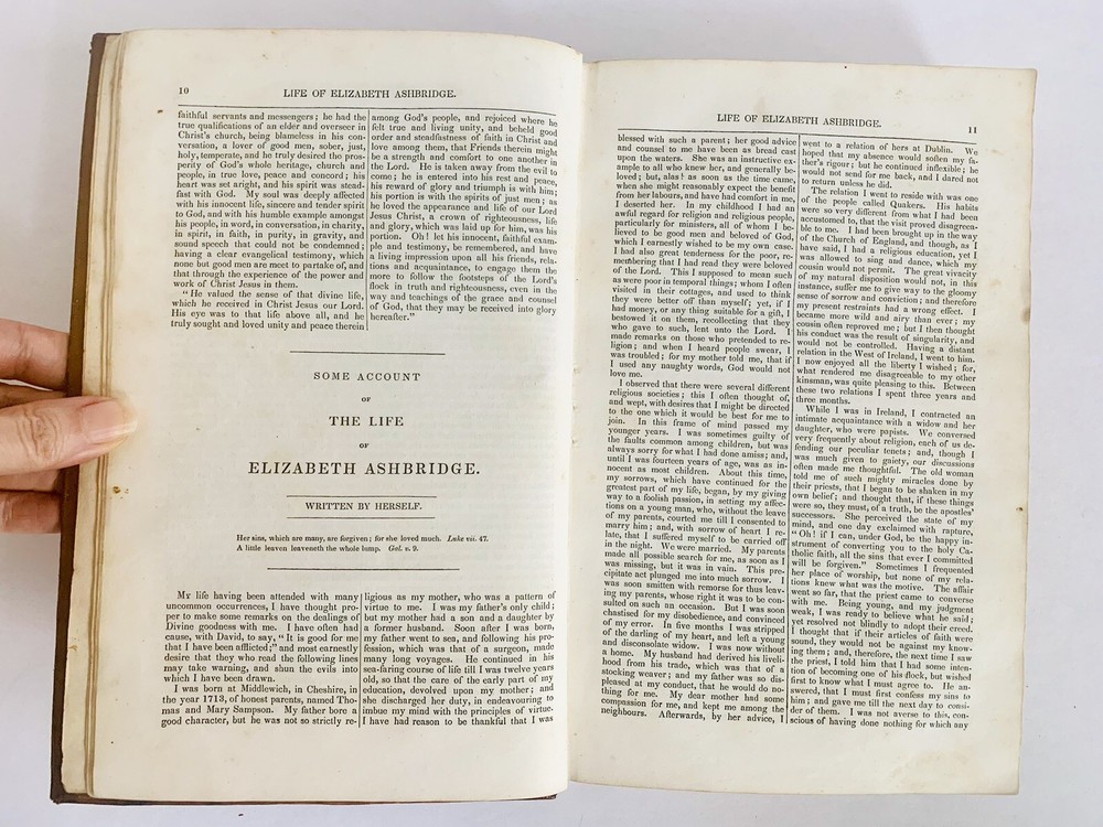The Friends' Library: Comprising Journals, Doctrinal Treatises, and Other Writings if Members of the Religious Society of Friends. Edited by William Evans and Thomas Evans Volume IV Hardcover Full Leather Binding with red and black leather labels and gilt titling to spine Marble end papers 480 pages Containing - Memoir of Giles Barnardiston - Memoir of Elizabeth Ashbridge - Memoirs of Ruth Follows - Life of John Richardson - Life of Charles Marshall - Life of Sarah Stephenson - Life of Benjamin Bangs - Life of Henry Hull - Life of John Woolman - Life of Jane Pearson - Narrative of John Philly and William Moore - Memoir of Gharret Van Hassen Book is in Very Good Condition Very light foxing in areas of the book Please see photos for specific condition information