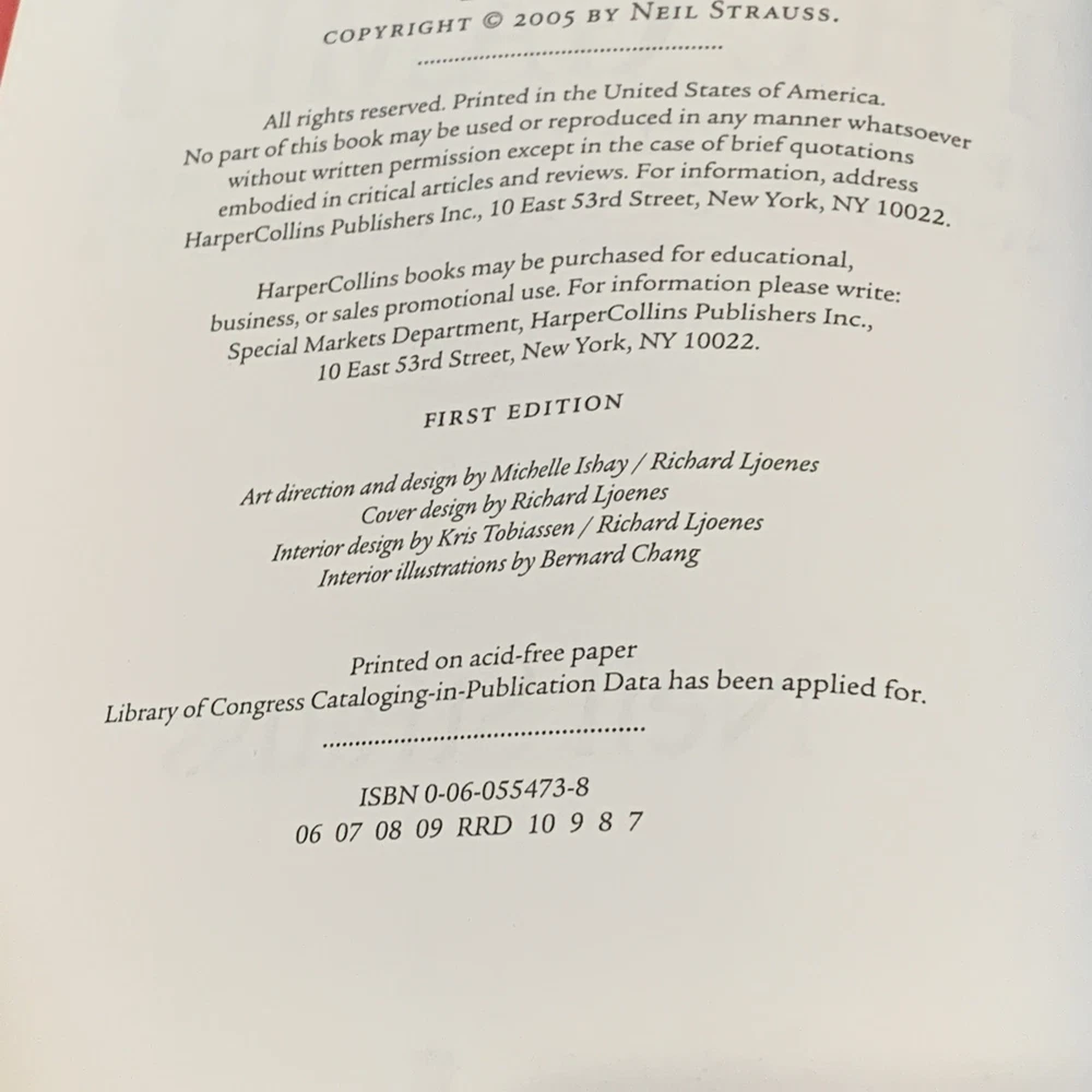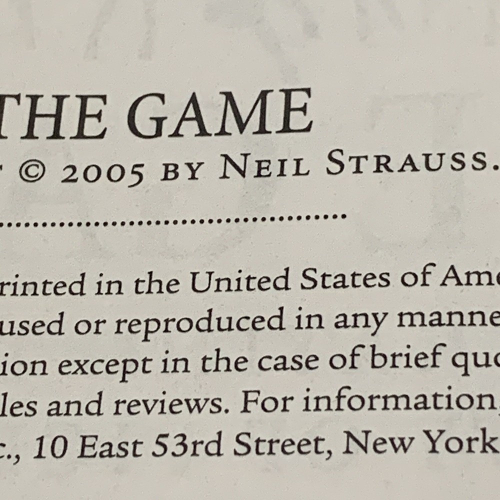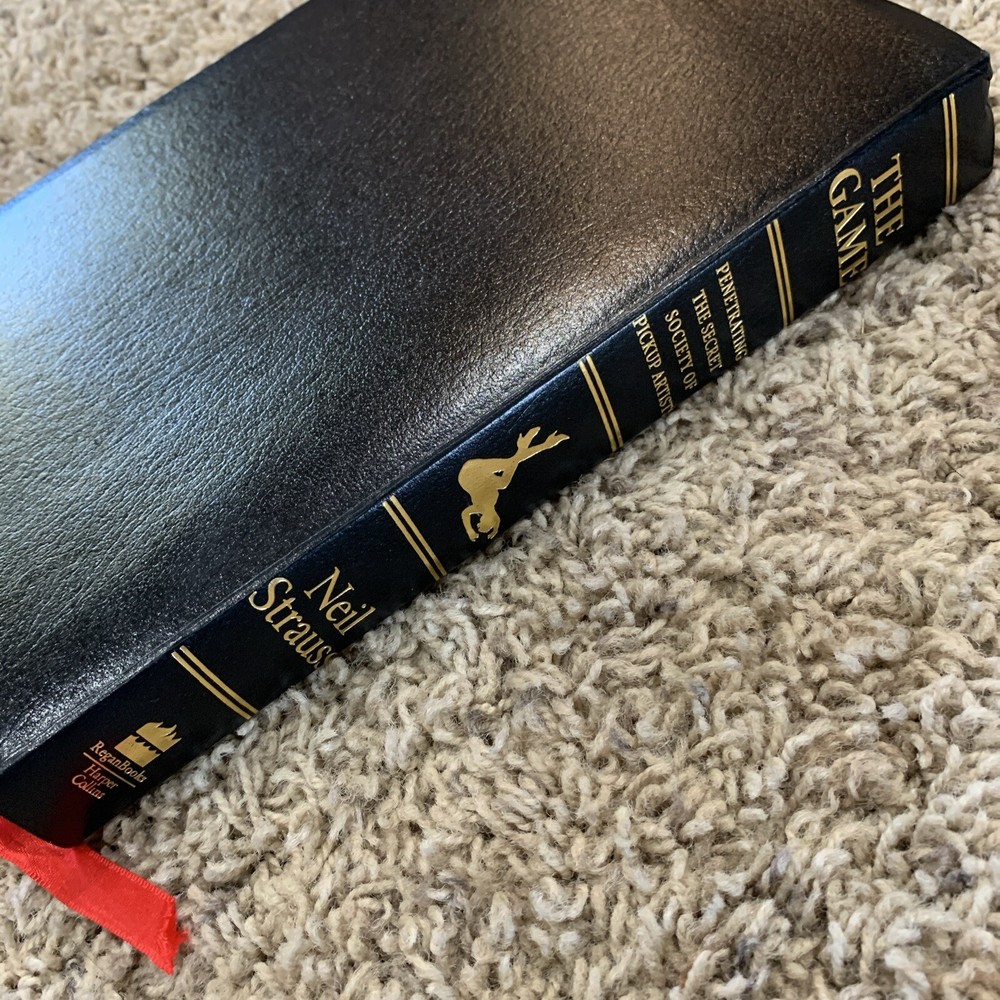 Discover the shocking secrets of the mysterious society of pickup artists in Neil Strauss' "The Game". This hardcover, first edition novel follows the journey of the author as he navigates through the world of love and romance, interpersonal relations, and the science of attraction. With 464 pages of captivating storytelling, this book is a must-read for anyone interested in psychology, philosophy, and biography. The novel is illustrated by the author himself and features special attributes such as 1st edition status and a gold edge faux leather cover. Don't miss out on this amazing opportunity to penetrate the secret society of pickup artists and uncover the secrets of the game.