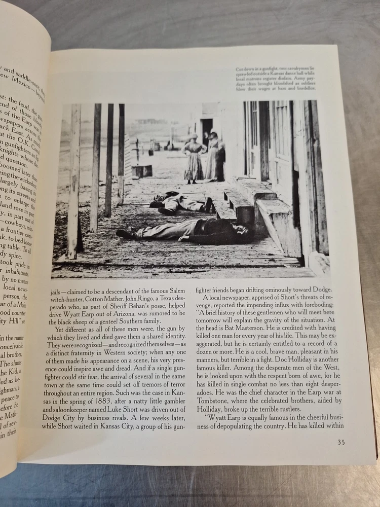 Step into the boots of the legendary Gunfighters with this stunning addition to the Time-Life Books series, The Old West. Immerse yourself in the captivating tales and rich history of American frontier life with this beautifully crafted book, featuring a faux leather cover that exudes vintage charm. Explore the rugged landscapes and untamed frontiers through the eyes of the Gunfighters, as you delve into the historical genre that has captivated readers for generations. Published in 1974, this book is a treasure trove of information on the Western scene, offering a deep dive into the beauty and complexity of historical American life.