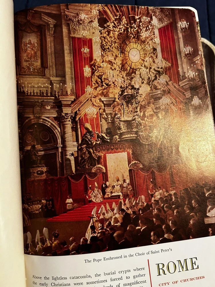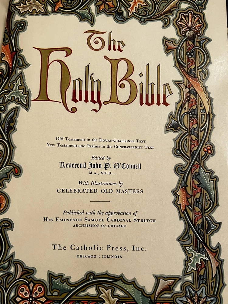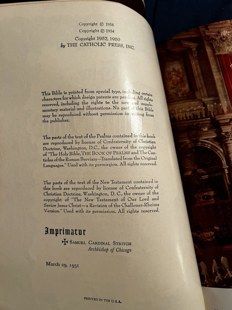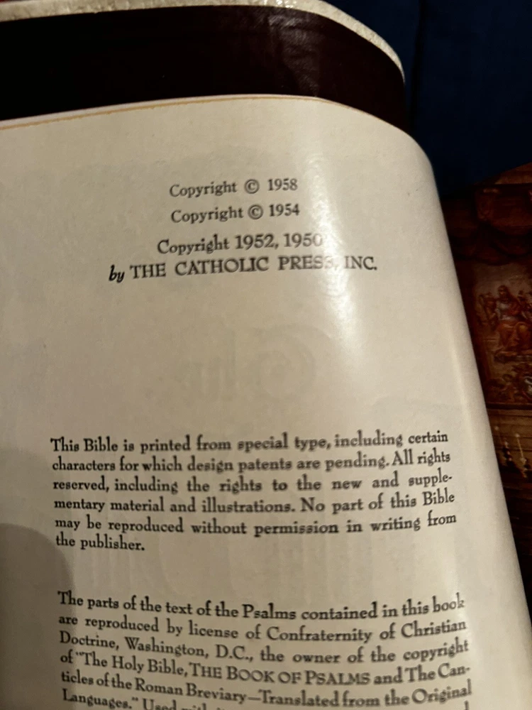 This stunning 1958 Catholic Life Edition Bible is a true treasure! The rich leather binding and vibrant color pictures—both historical and contemporary for its time—make it visually breathtaking. Despite its age (over 70 years!), it holds up beautifully, with just minor wear that adds to its charm. A must-have for collectors or anyone who appreciates vintage religious texts. The detailed artwork and timeless design make it stand out—definitely one of the most beautiful Bibles I’ve come across. Check the photos to see its unique character!