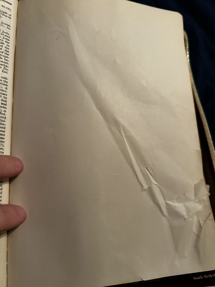 This version was originally released in 1950c, this version (released in 1958) featured beautiful color photos of the times and well as drawings (pictures of) from much earlier times. One of the nicest Bibles I’ve seen. See pics for both the beauty as well as condition issues. This is over 70 years old so it does have some age issues. Offers always considered. Thanks for looking today! Please check out my other auctions and sales for more unique collectibles and historical treasures! You’ll never know what you might find. Any questions, shoot me a message. ✌️