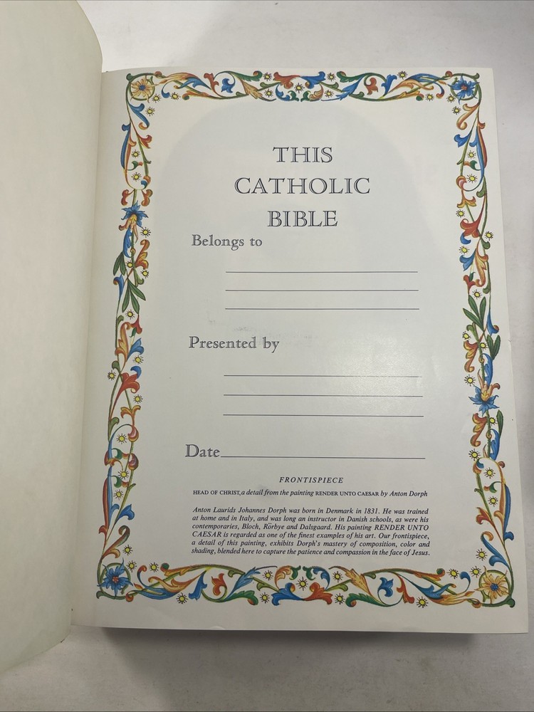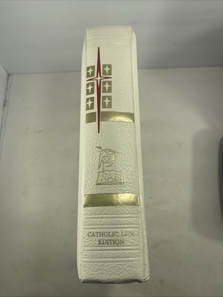 The Holy Bible Catholic Life Edition 1971 Leather Bound Gilded Red Letter VTG is a special edition Bible published by Good Counsel Publishing in Chicago, United States in 1971. This Bible features a luxurious leather binding with gilded edges and red letter text, making it a visually stunning and collectible item for any Christian. The Bible is printed in English and includes illustrations, making it a valuable addition to any collection of religious texts.