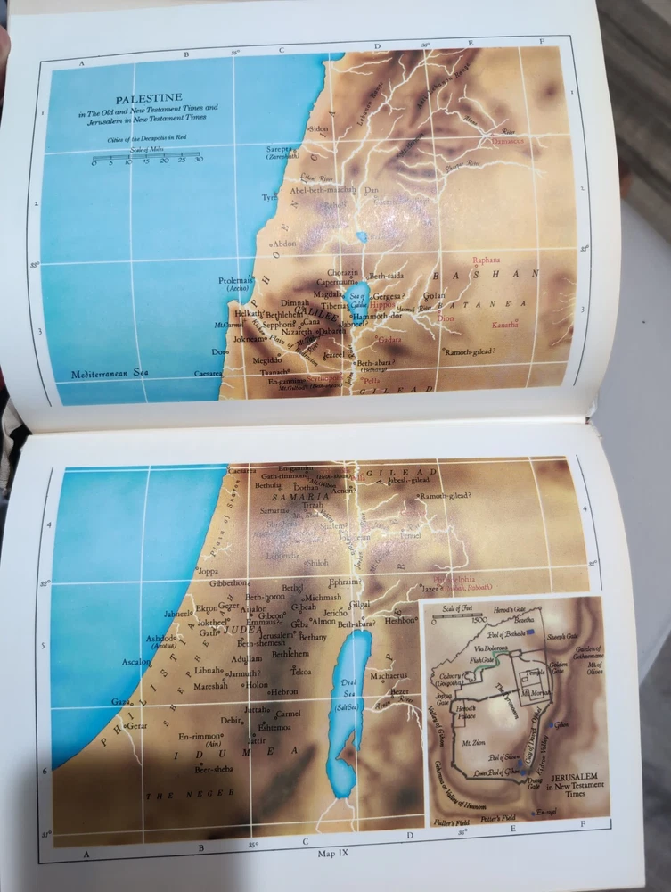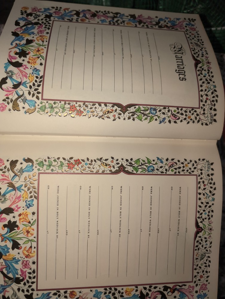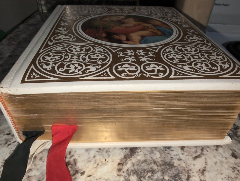 Leather-bound, gilded page King James Version designed by Howard Morris, copyright by Abradale Press, Inc. Incorporates genealogical records (all blank), prayers, reference, and cyclopedia....