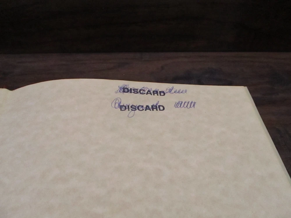 Please see pictures for condition. Light wear to corners and edges. Small damage spot on cover bottom right corner. Back cover is faded. Discard stamp on top edge of book, and on end page....