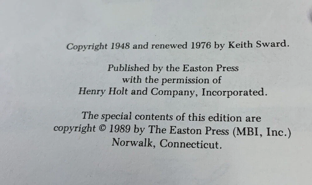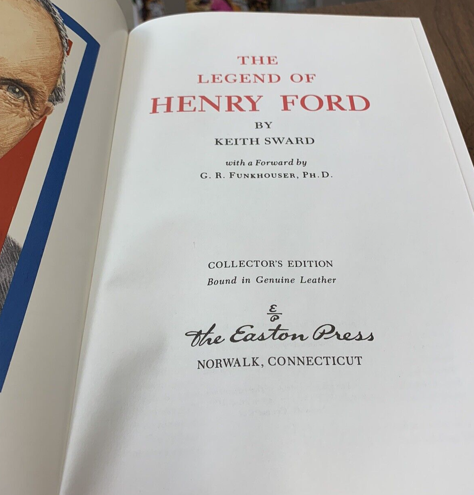 The Legend of Henry Ford by Keith Sward Published in1989 by Easton Press Collector's Edition. Near fine condition with minimal wear. Tight, square and unmarked. See photos Bound in genuine leather. Moire endpapers and gilded lettering on spine and embossing on front cover, satin bookmark. br
