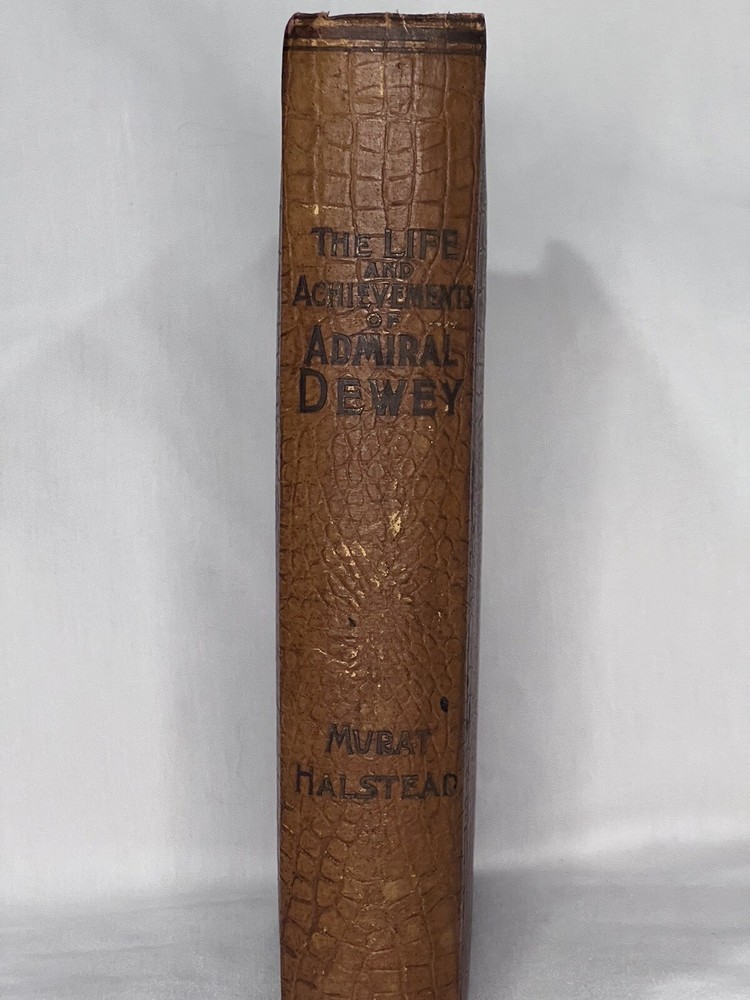 This is a rare and prized collector's edition book titled "The Life And Achievements of Admiral Dewey" by Murat Halstead, published by HL Barber in 1899. The book is in English and features illustrations. It is the first edition and contains a biography and autobiography of Admiral Dewey, a prominent historical figure. The book is bound in leather and is a great addition to any antique book collection. This book is a gift from Halstead to Dewey and is a valuable piece of history.