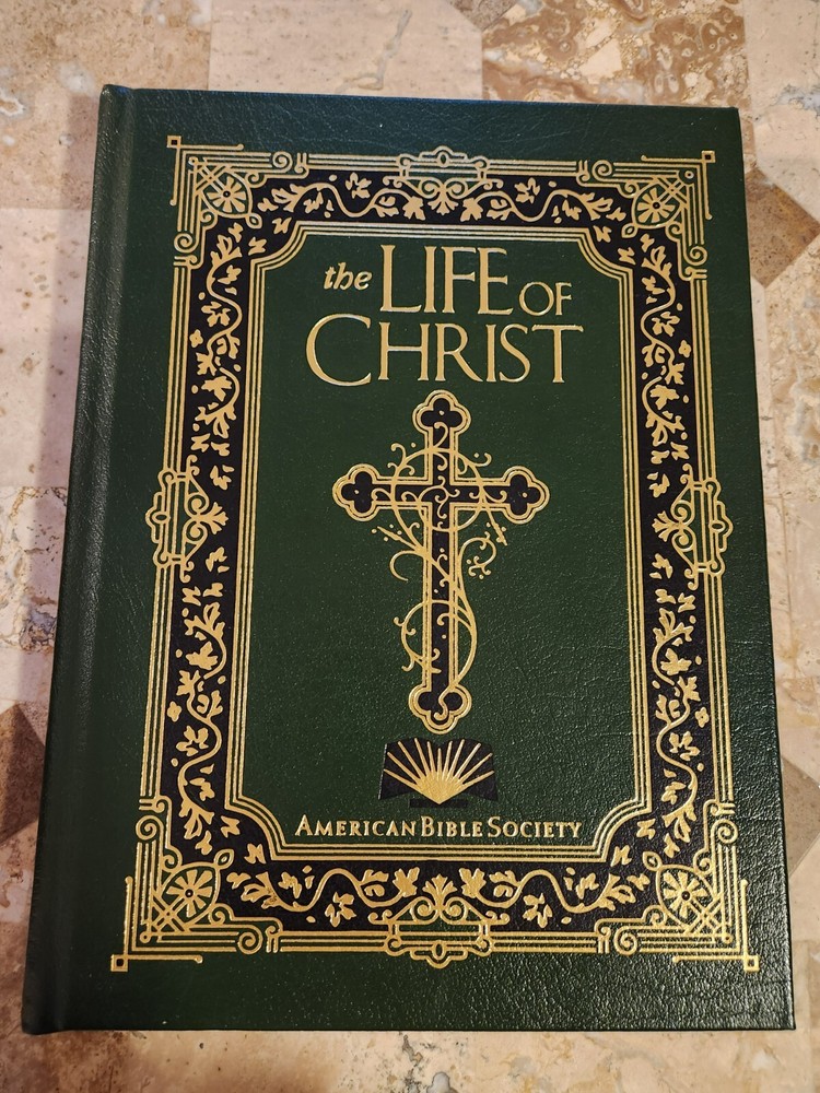 Near Fine copy of The Life Of Christ by the American Bible Society. Easton Press leather bound edition of the Time Inc. Home Entertainment release Great condition!! No writing, marks, or defects. Has filled in bookplate on moire page before the title pages. Collector's Edition Fully bound in genuine leather. 22kt gold deeply inlaid on the "hubbed" spine. Superbly printed on acid-neutral paper that lasts for generations. Sewn pages — not just glued like ordinary books. Handsome moiré endpages and a satin-ribbon pagemarker. Gilded page ends. Look for more Easton Press listings coming soon.
