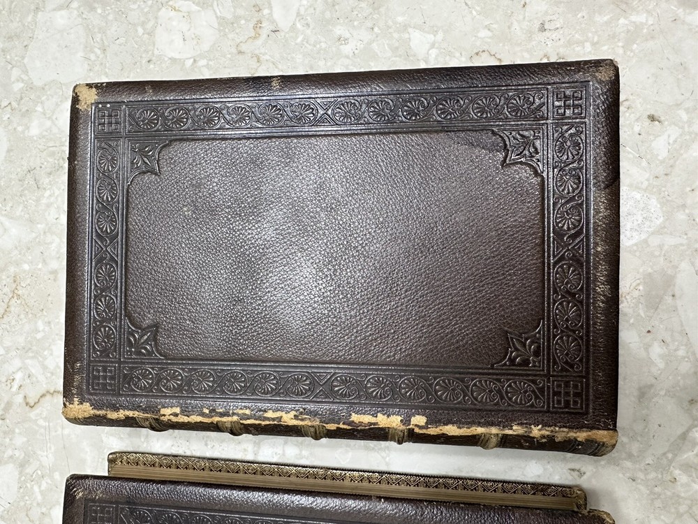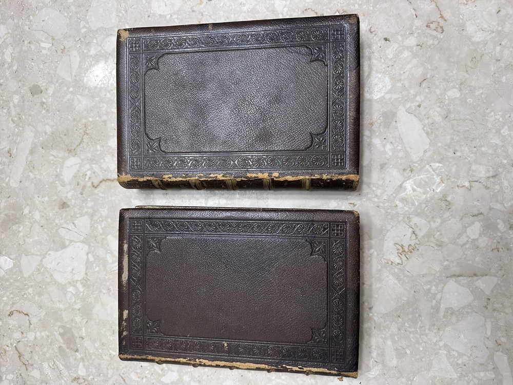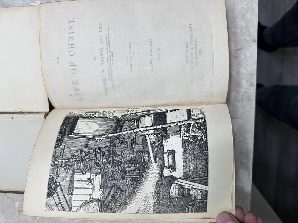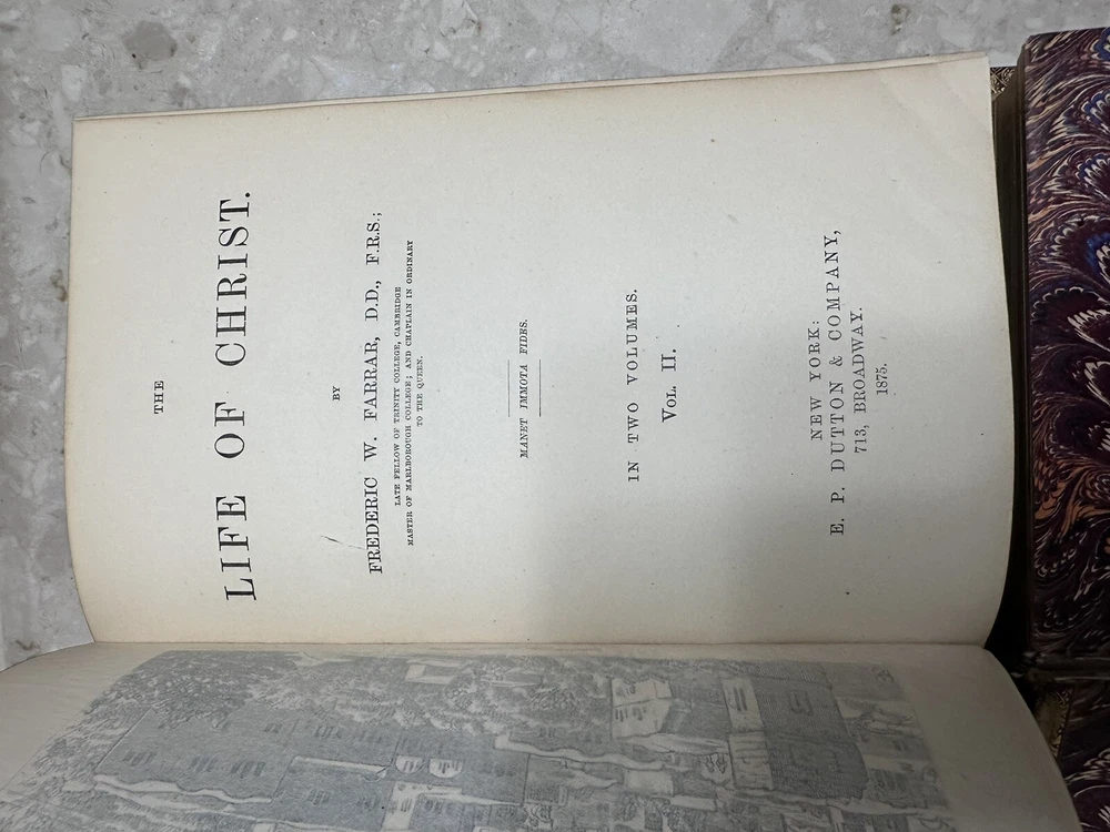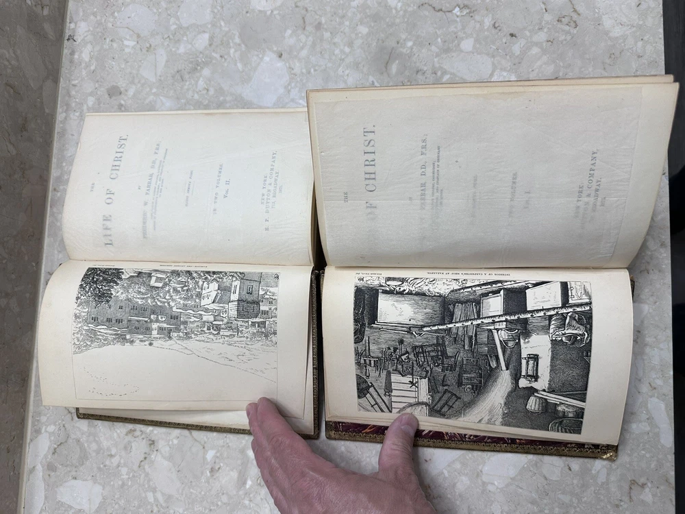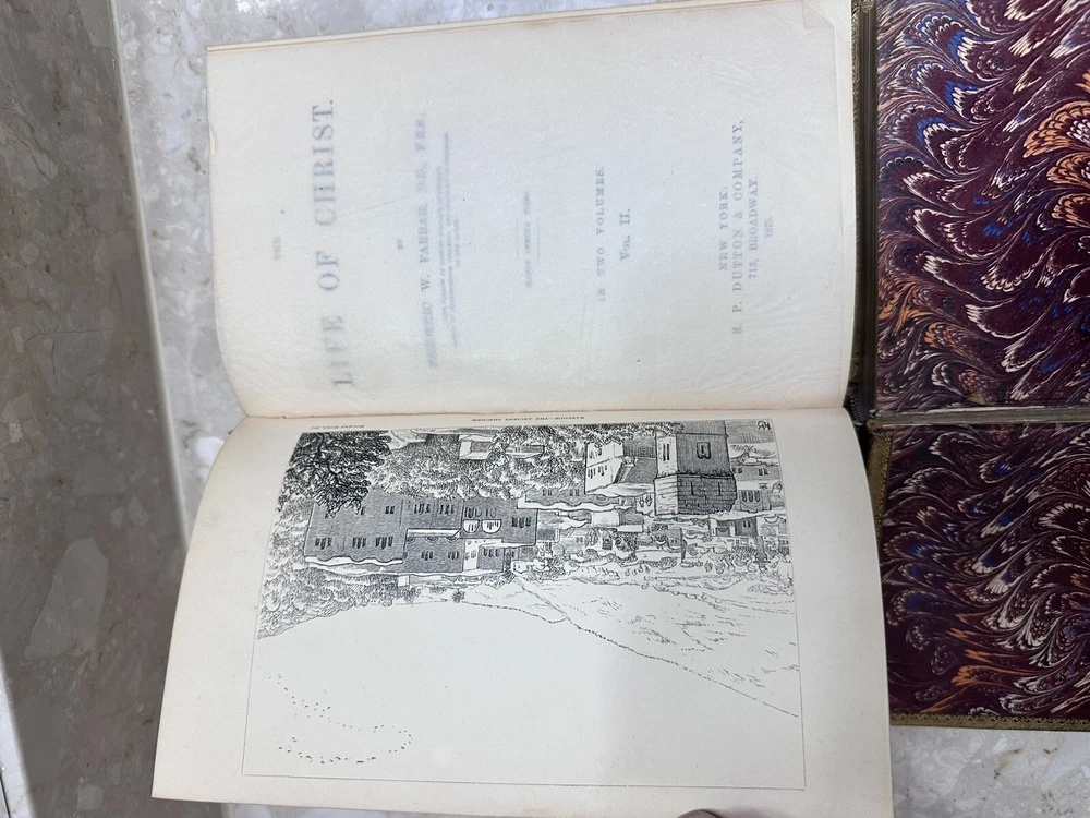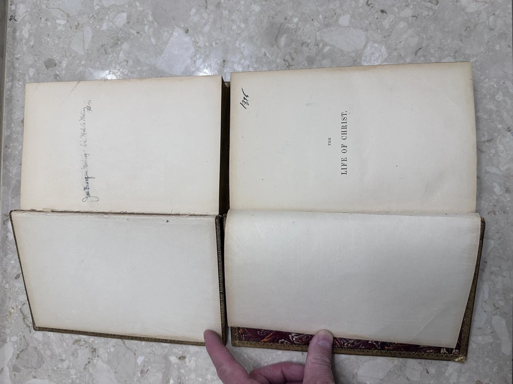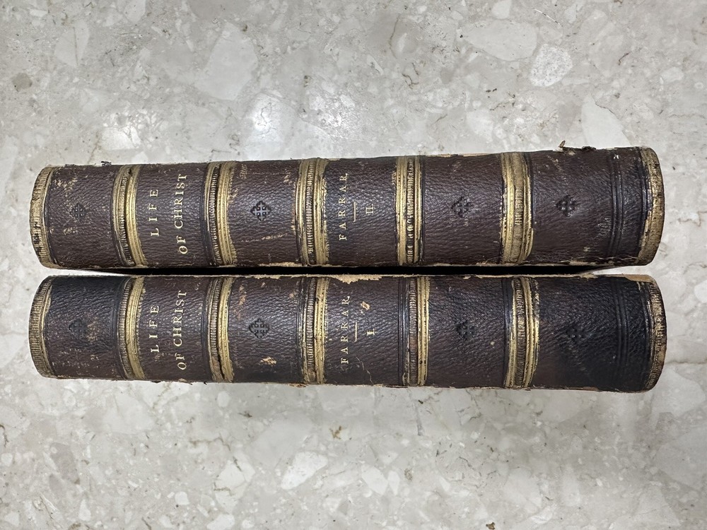 This two-volume book set is a must-have for anyone interested in the life of Christ. Written by Frederic W Farrar, it offers a detailed account of the life of Christ. The books are beautifully bound in red leather and gold gilt offer a great addition to any book collection. This is a rare find and needs special attention 1874? books Volume 1 and 2 Please notice all pictures.some damage on one of the covers. more pictures and videos upon request. Cover marbled with tan leather corners and spine. Giltlettering and decorative design on spine. All cover edges bumped and torn exposing inside paper. Spine edges frayed. Beautiful book for its age. its impossible describe all the details in words so please chek picture for details. shipping is fast and insured.