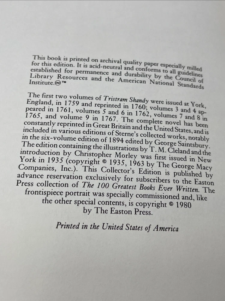 The Life and Opinions of Tristram Shandy Collector's Edition Easton Press 1980.