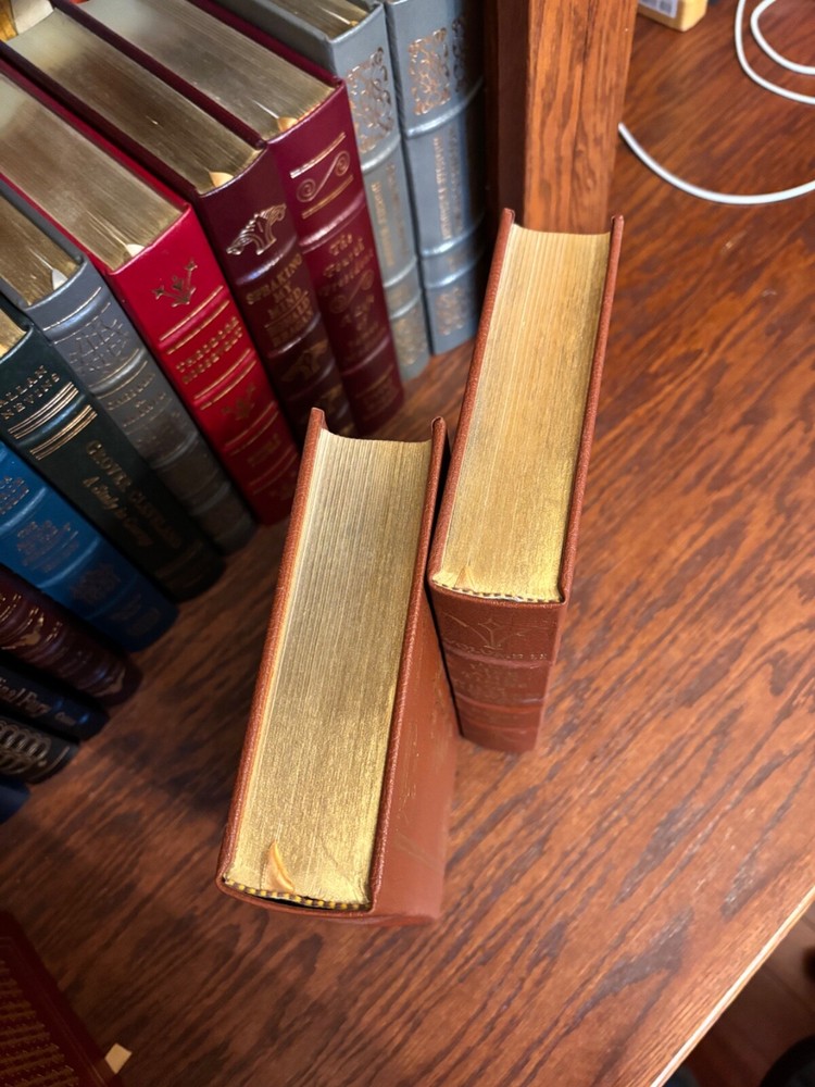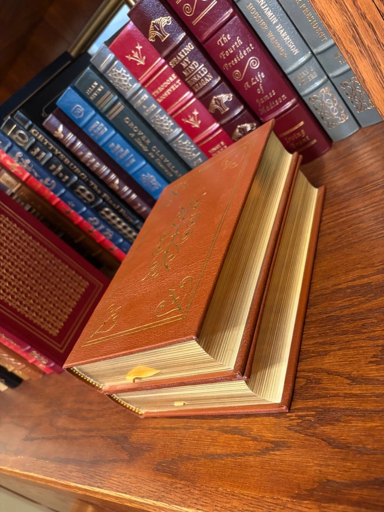 Easton Press(1988)full leather hardcover, 22K gold accented, decorated endpapers, ribbon marker, full color illustrations, book is in “Fine” condition, obviously unread and appearing unused, blank bookplate affixed to early page, includes Collector Notes, includes BOTH volumes........(please see my many feedbacks for an idea of how I grade books and generally do business) (see my EBay store for the finest books & prices, many signed).......(No remainder marks or price-clipping)...............Always shipped in a box, well protected