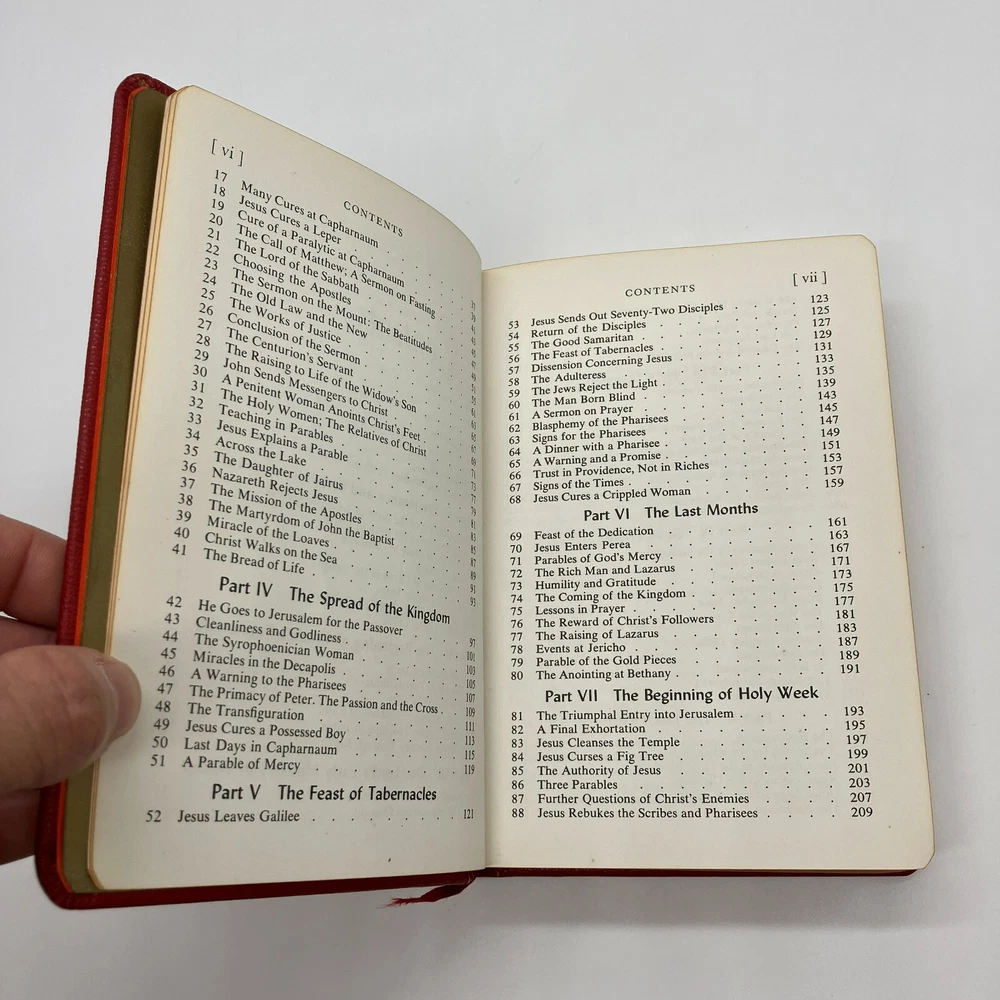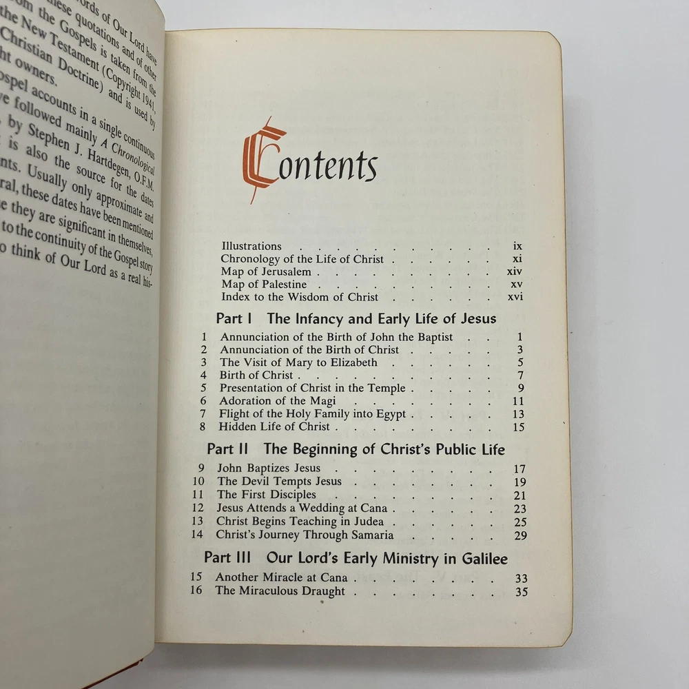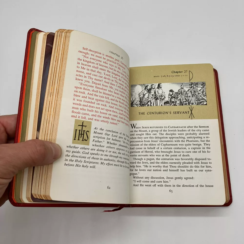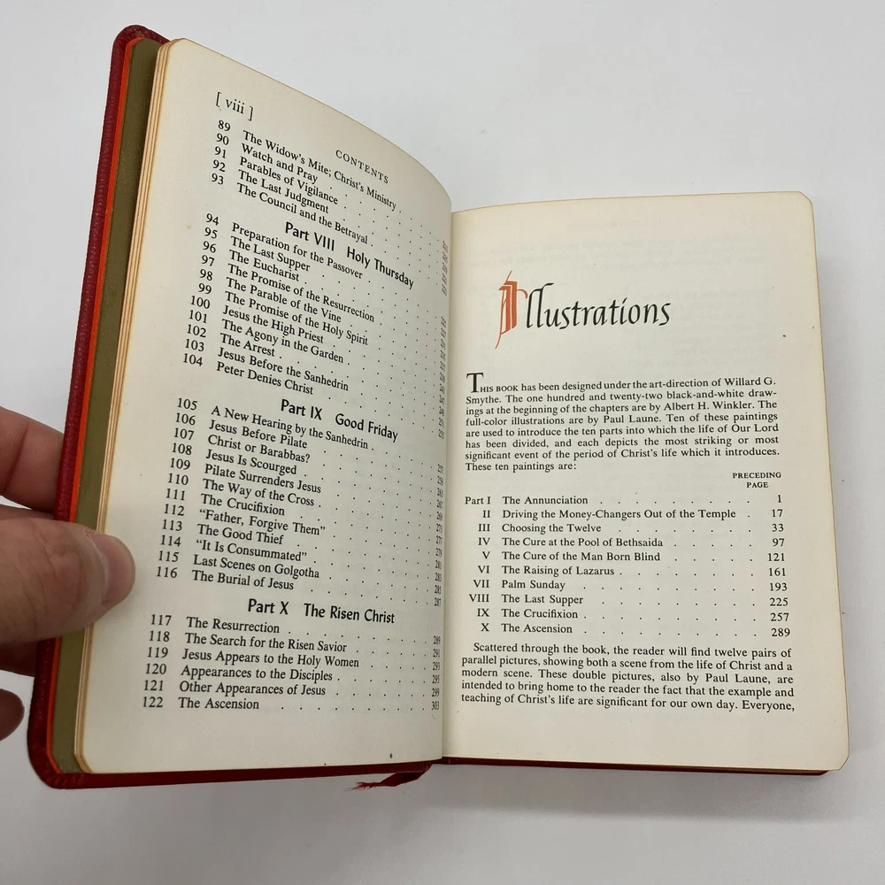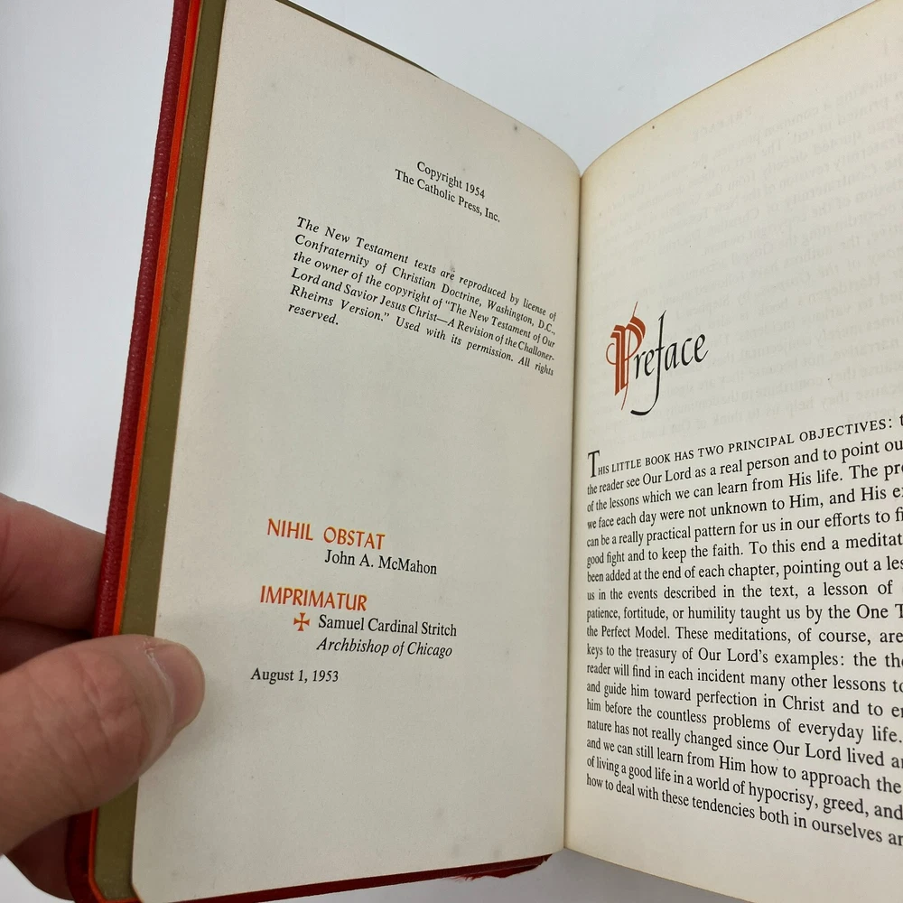 The Catholic Press, 1954. Leather bound illustrated hardcover of The Life of Christ: Our Lord's Life with Lessons in His Own Words for Our Life Today. Very Good. Crisp copy with sturdy binding, clean pages & light shelf wear.