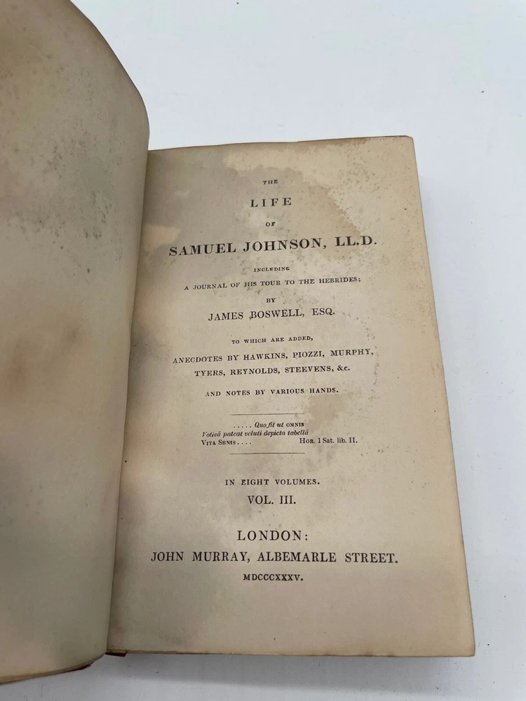 The Life of Samuel Johnson Volume 3 by James Boswell Leather Bound 1835 Dive into the rich tapestry of 18th-century literature with "The Life of Samuel Johnson Volume 3" by James Boswell, with additional insights from Edmond Malone. This leather-bound edition, published in 1835, offers a sophisticated addition to any bibliophile's collection. It provides an exquisite reading experience for those fascinated by the scholarly journey of Samuel Johnson, capturing the essence of a remarkable life. This edition, crafted for the discerning reader, is presented in English and is designed to appeal to an adult audience. The book's classic appeal is enhanced by its leather-bound format, ensuring durability and a timeless look that compliments any personal library or bookshelf. A treasure for enthusiasts of historical biography and literary history alike.