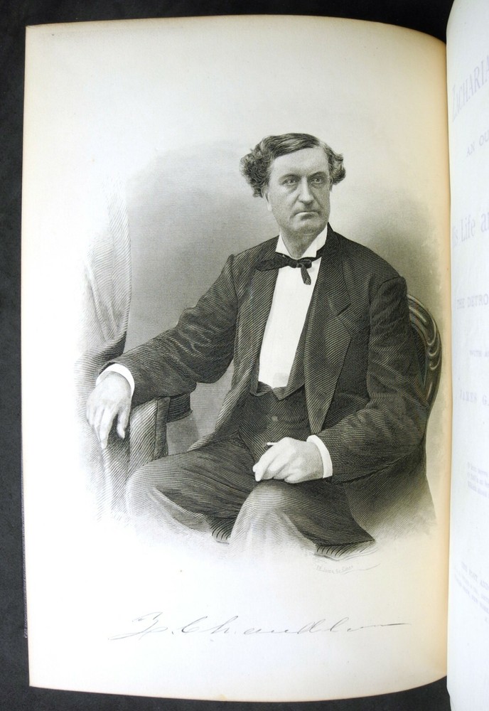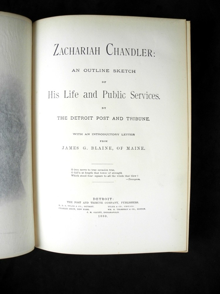 The second blank end paper has a signature "Allan Shelden". Allan Sheldon was the business partner of Senator Zachariah Chandler. He was a somewhat famous wholesale dry goods merchant from Detroit. He also owned a famous mansion designed by Gordon Lloyd. S12C - E