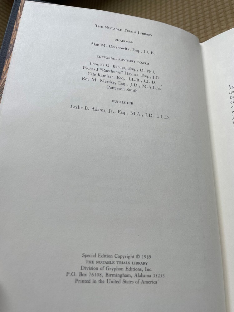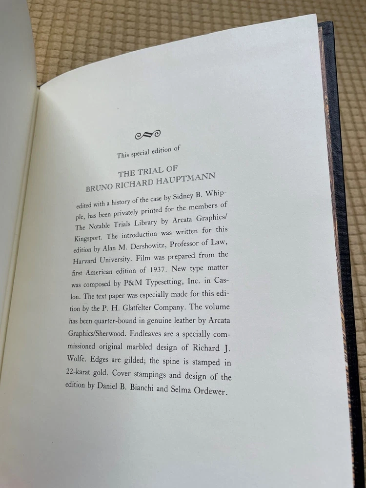 For sale is a copy of The Lindbergh Kidnapping Case by Sidney B. Whipple as published by Gryphon Editions as part of their Notable Trials Library series. The book appears to have never been read and would be in like-new condition except for a previous owner's bookplate attached to the inside of the front cover (see photo).