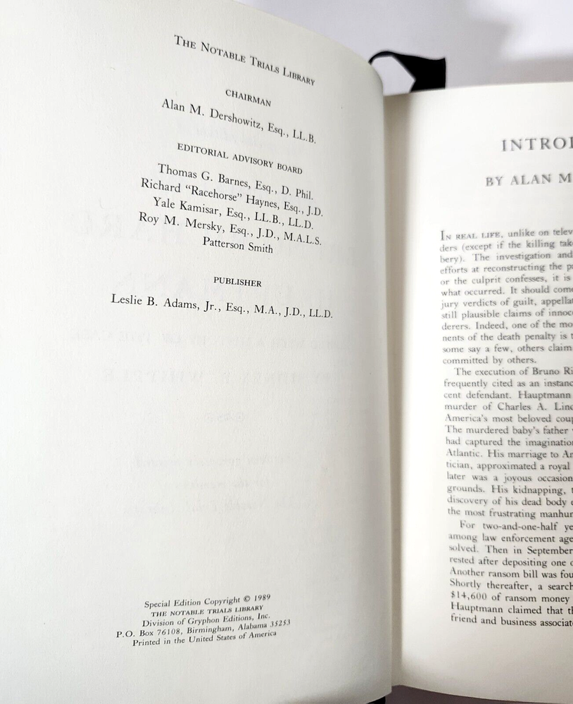 The Trial of Bruno Richard Hauptmann. Edited with a History of the Case by Sidney Whipple. 1989, Leather Bound. Ships Quickly. Combined Shipping is Available. If it does not show in your cart, please email.