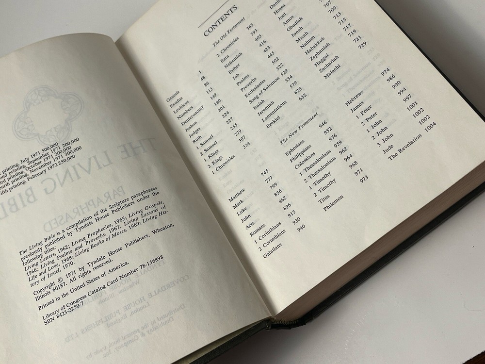 This vintage hardcover edition of "The Living Bible Paraphrased" by Tyndale House is a must-have for any collector or lover of religious literature. The book is bound in beautiful green faux leather and includes both biography and autobiography genres, making it a valuable addition to any library. The first edition book was published in 1971 and is in excellent condition. It is a nonfiction narrative type and includes short stories with a religious topic. The book is intended for young adults and adults and is written in English. The book is perfect for anyone looking for a meaningful read that will inspire and uplift. Perfect for collectors and fans alike and makes a great gift. One day safe shipping turnover. Ships usps media mail. Ships the day after payment. Condition shown in pics. What you see is what you get. No refunds. Enjoy!!!
