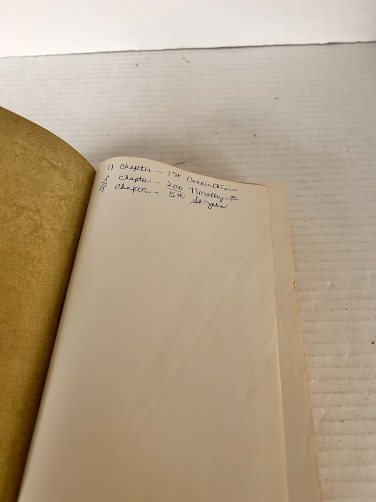 Pre-owned Bible in good condition with normal wear and tear for its age. First cover page has some damage. The previous owner wrote notes inside the cover page. No other highlighting or writing noted.