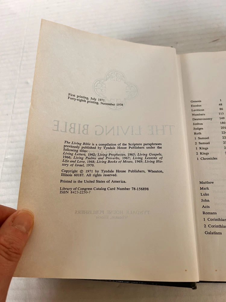 Pre-owned Bible in good condition with normal wear and tear for its age. First cover page has some damage. The previous owner wrote notes inside the cover page. No other highlighting or writing noted....