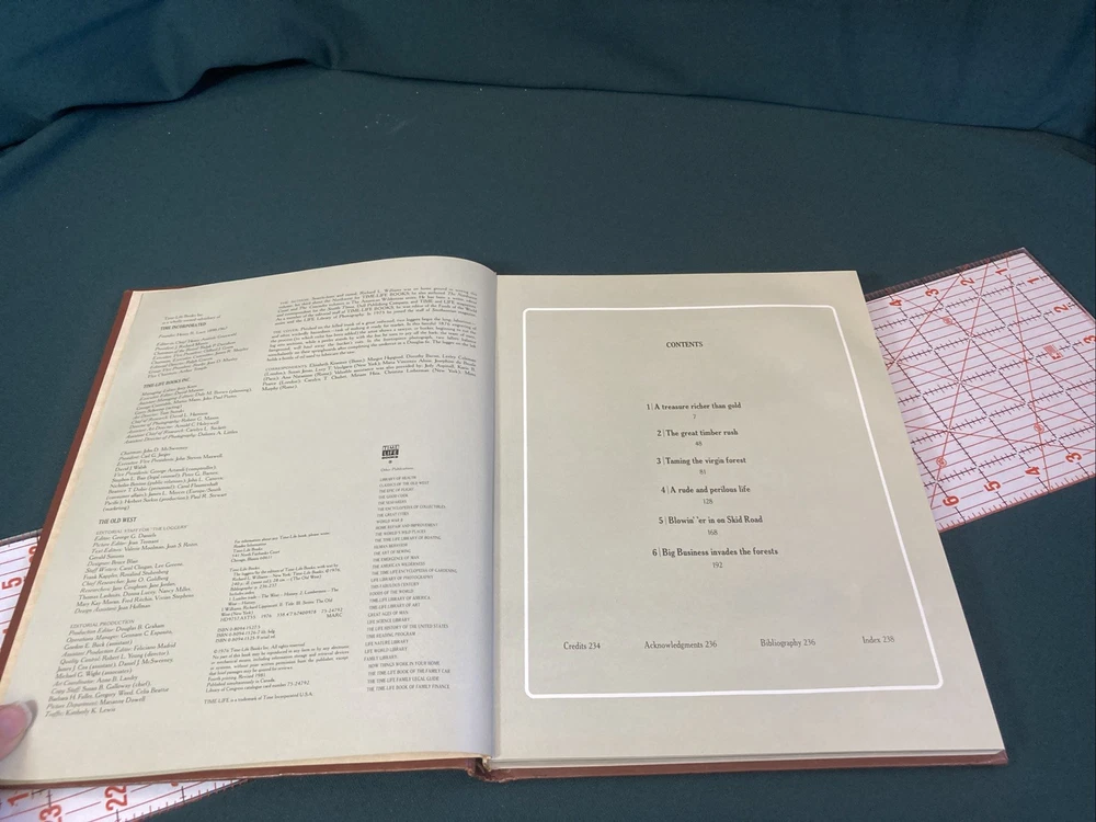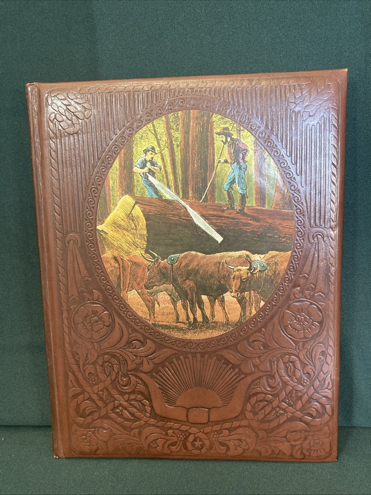 The Old West : The Loggers by Time-Life Books. 4th printing 1981. This Book features a padded leather like cover that has some minor cosmetic shelf wear and two noticeable cup ring dents in the padding of the back cover. No other damage noted anywhere in the book. Ships via USPS Media Mail.