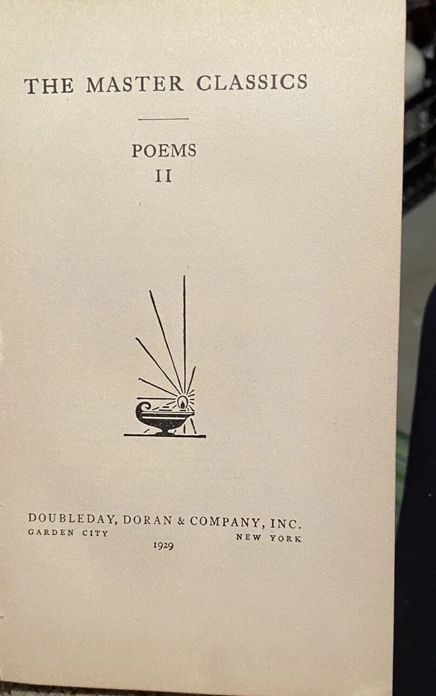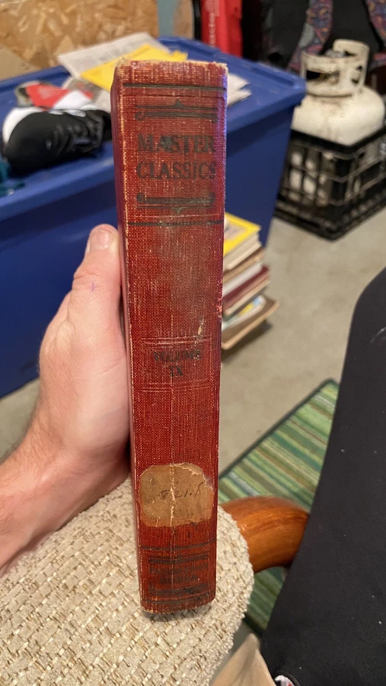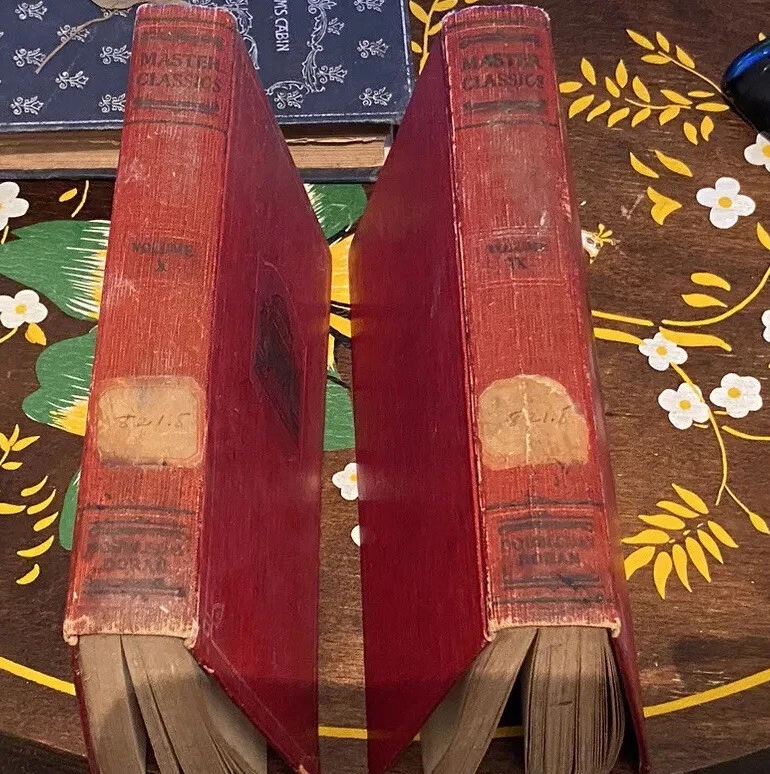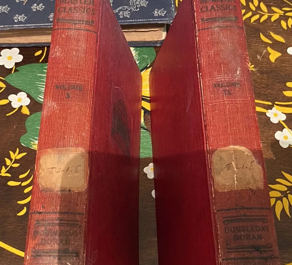 The covers are in ok condition but the pages are in great condition!! All pages intact!!! Introducing "The Master Classics Volume IX & X" by Doubleday Doran, published in 1929. This vintage set includes two hardcover books with a total of 252 pages. The books feature a collection of classic poems from world literature and are a must-have for any book collector or enthusiast. The author's signature does not appear in the books. The books are in good condition considering their age, with some signs of wear on the cover and pages. The publisher of the books is Doubleday, known for their quality publications. The set is a great addition to any bookshelf and a charming way to experience classic literature.